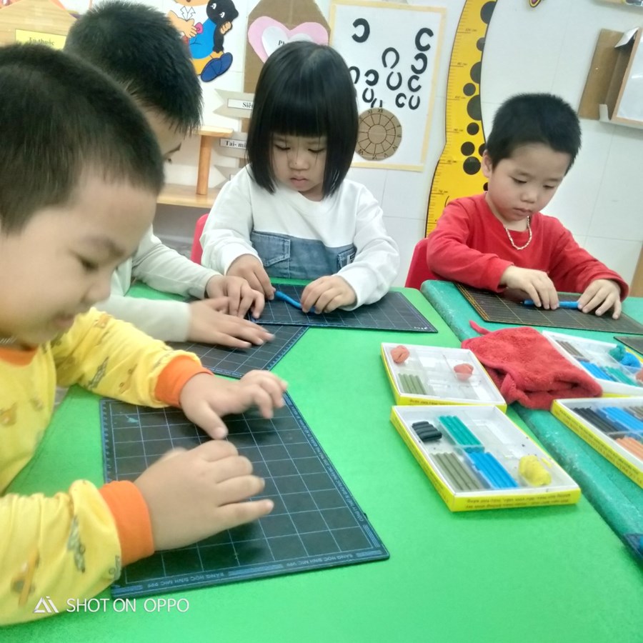 Giờ học hoạt động tạo hình-Lĩnh vực phát triển thẩm mỹ: Nặn chiếc phao bơi