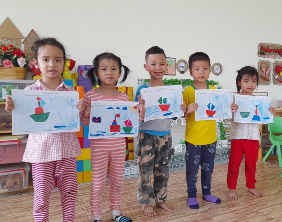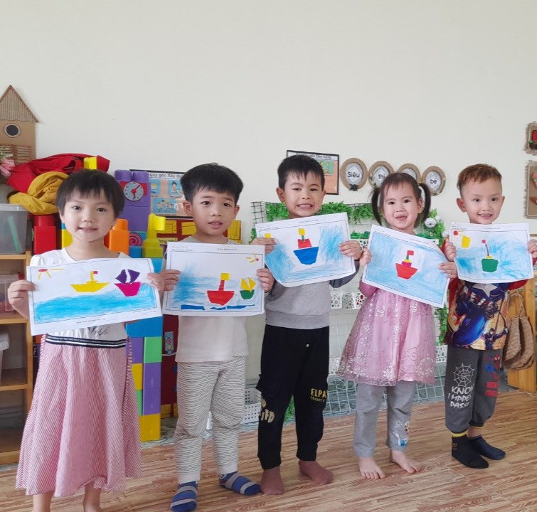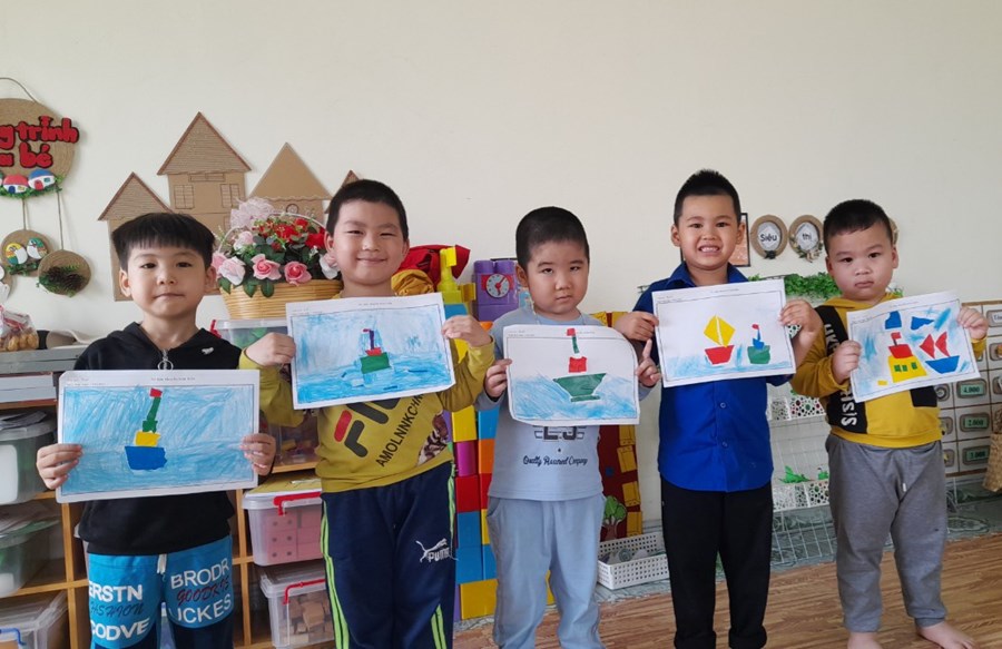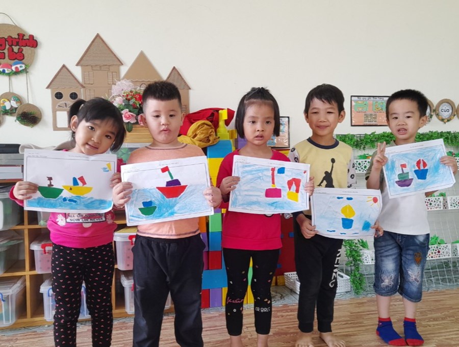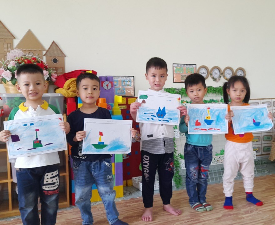 Hoạt động học: Xé dán thuyền trên biển
