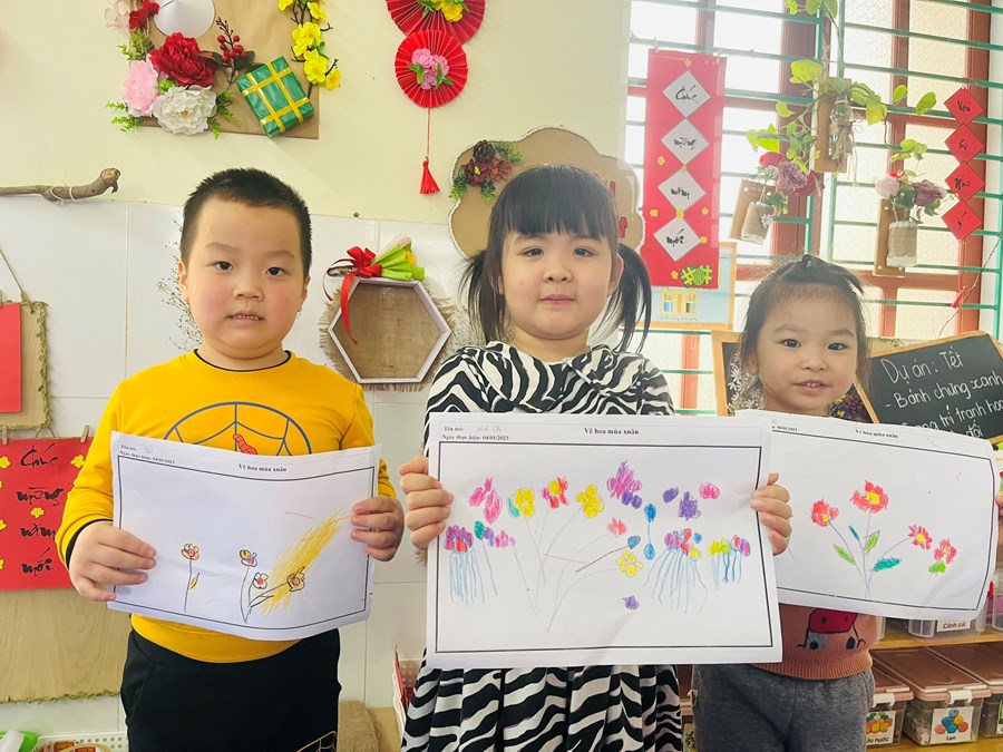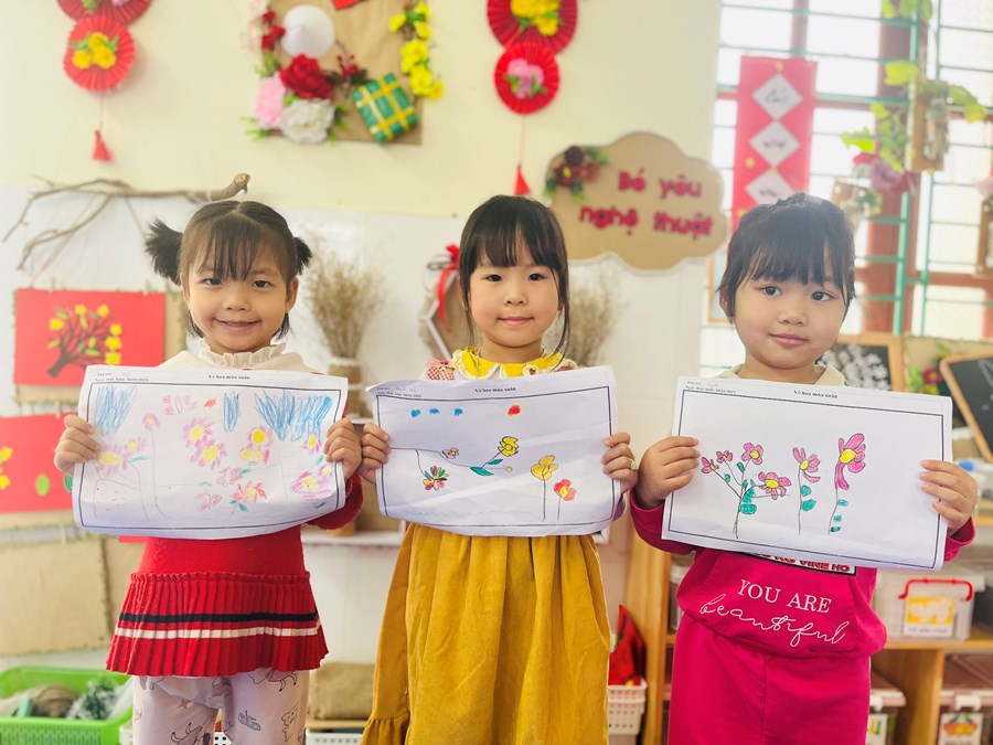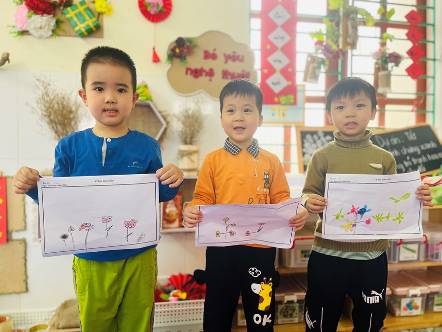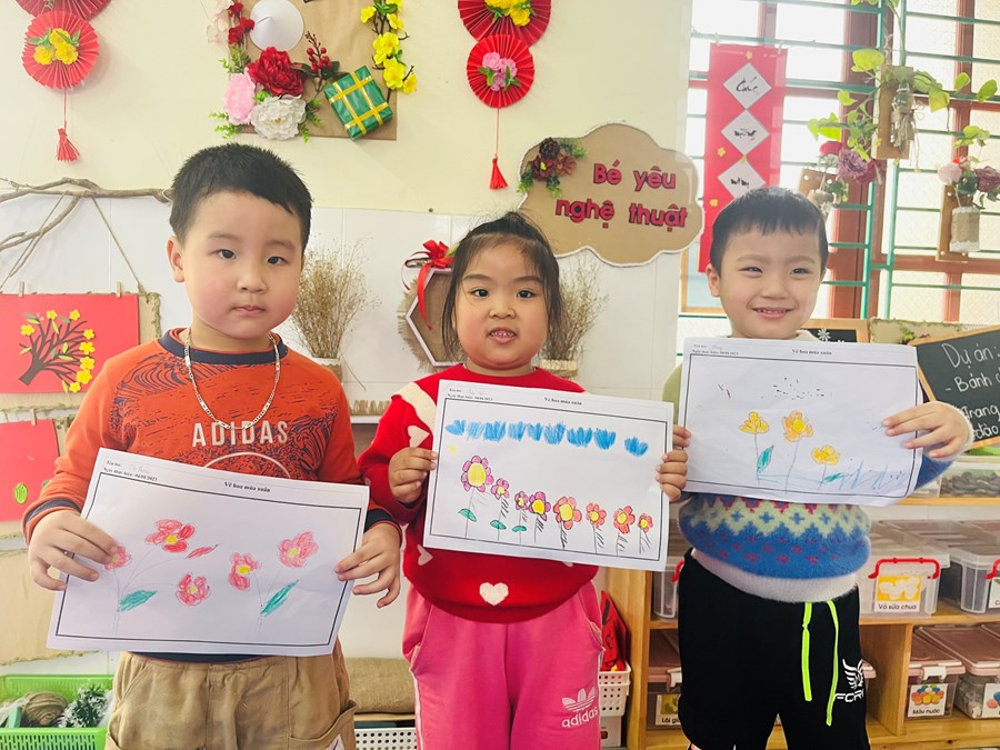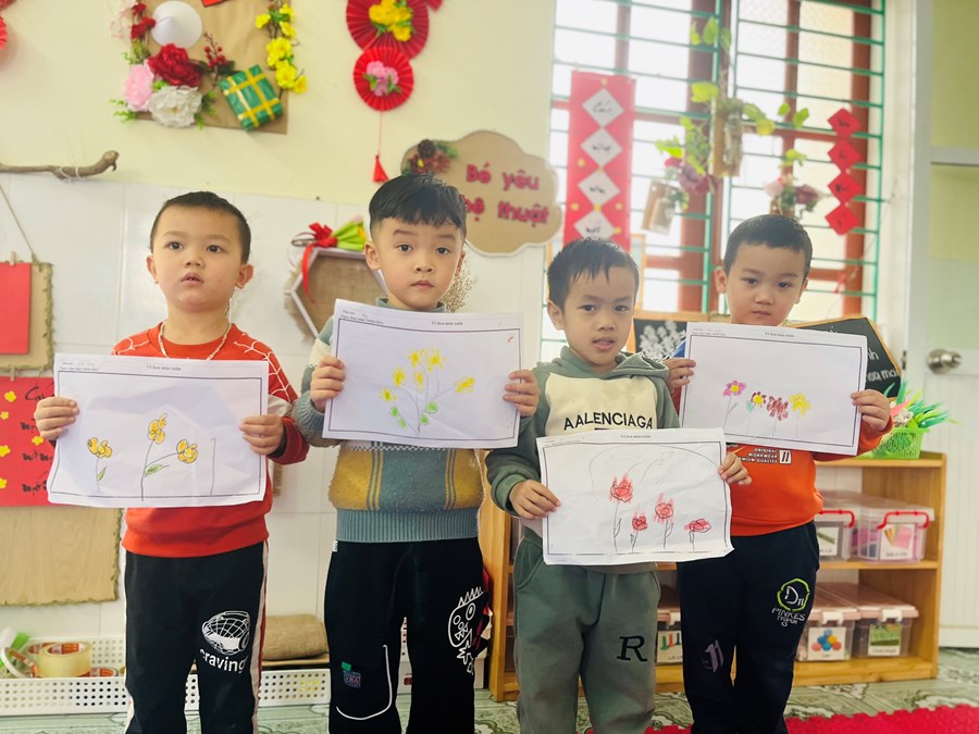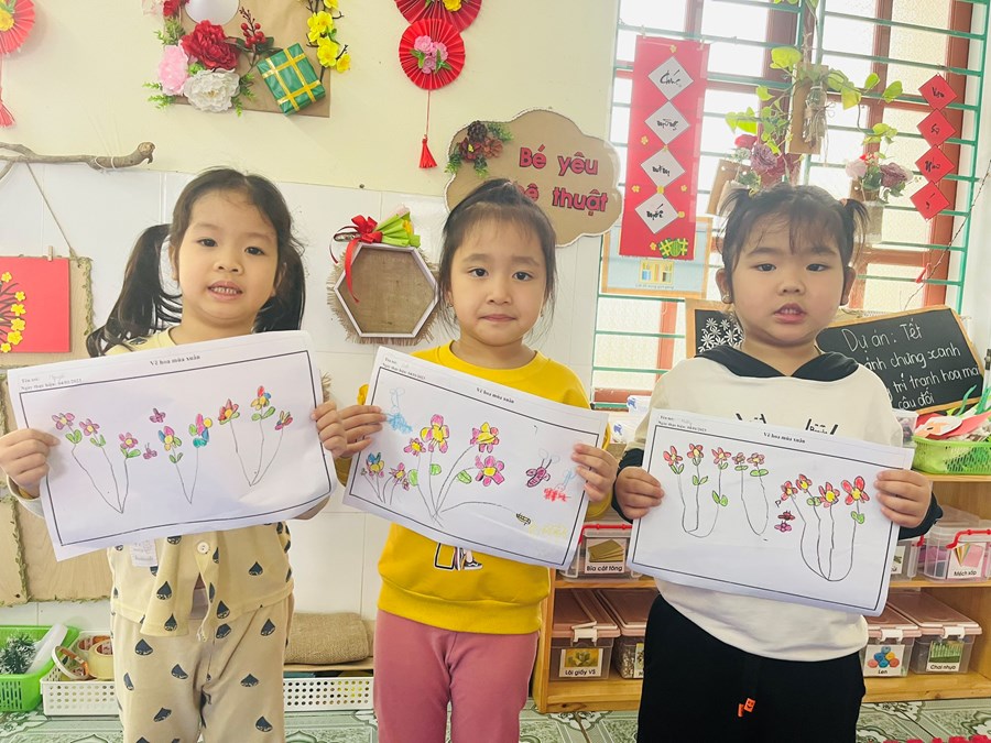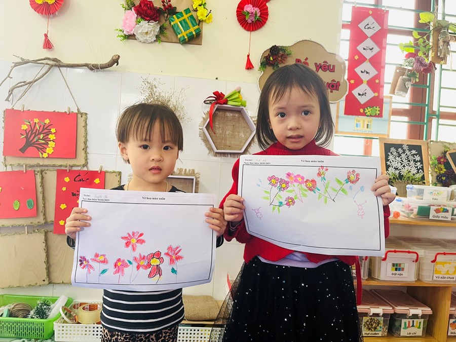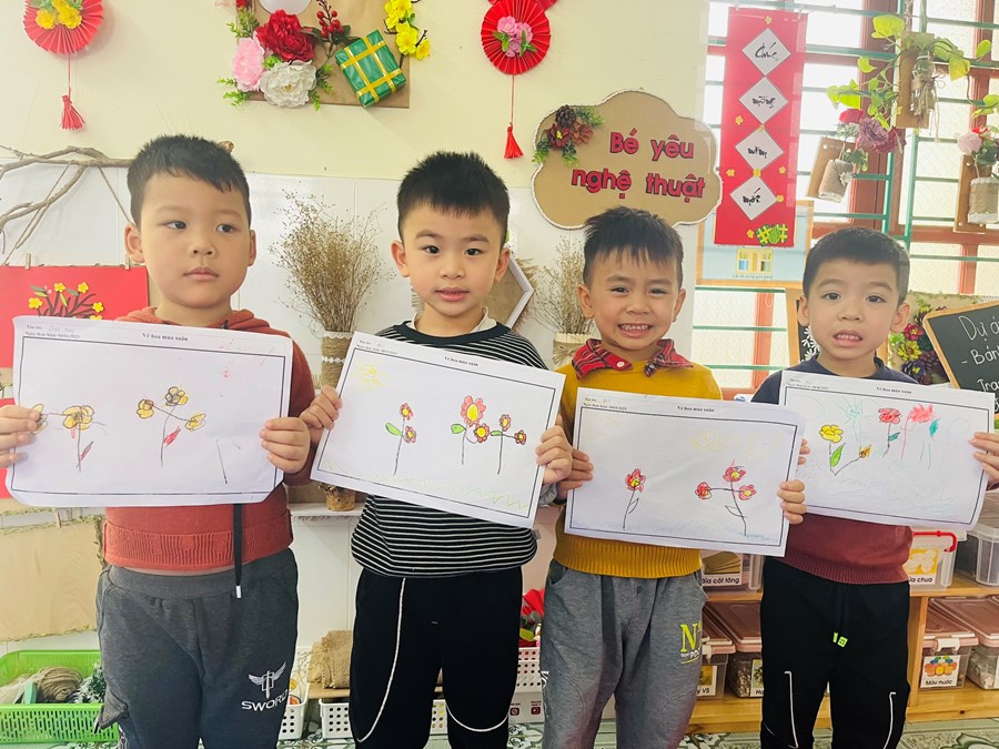 Bé vẽ hoa mùa xuân (Lĩnh vực phát triển thẩm mỹ)