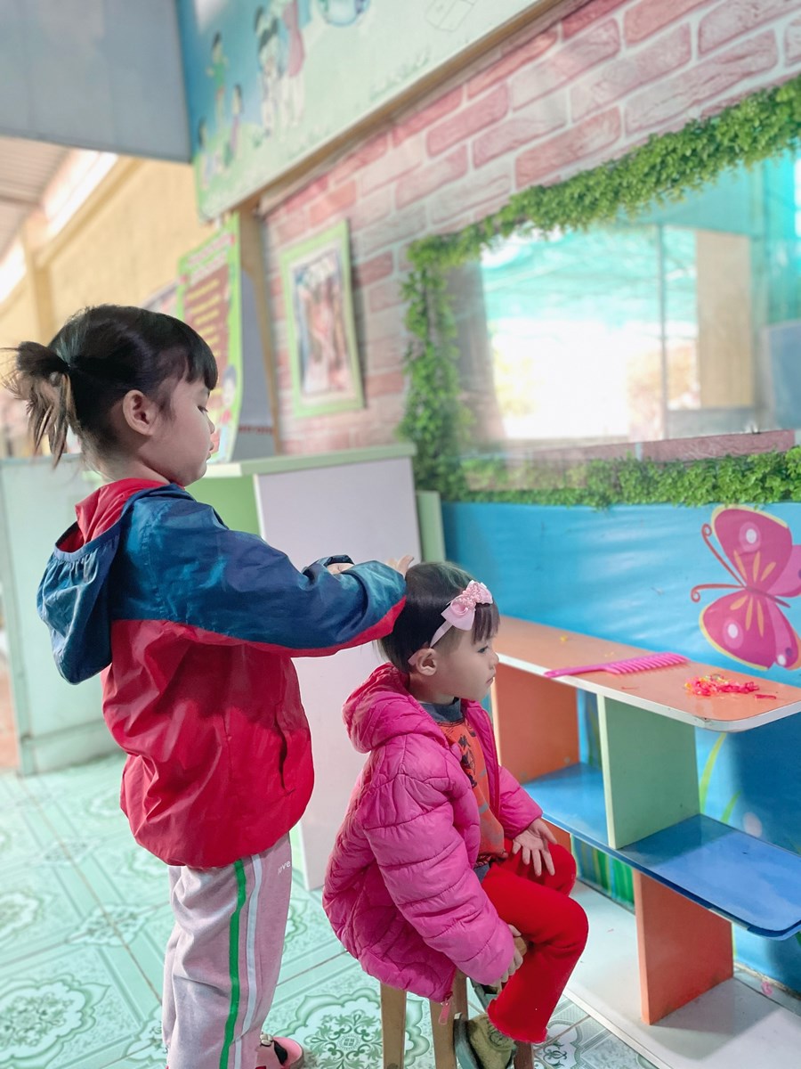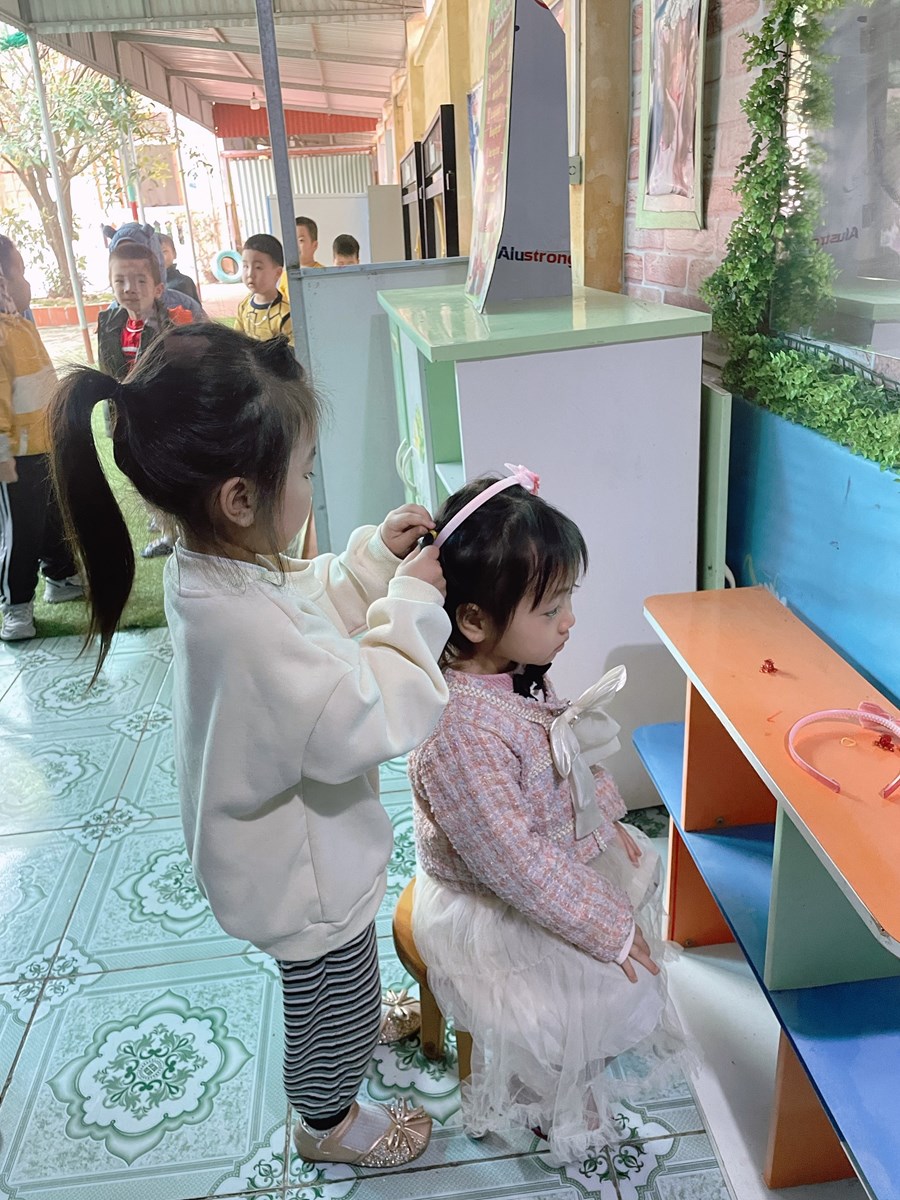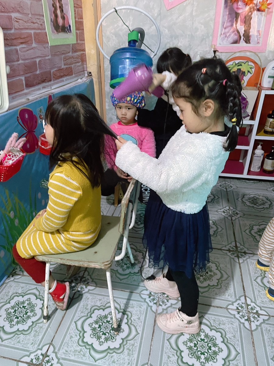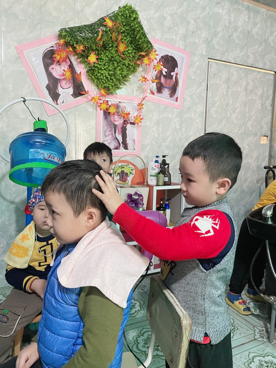 Bé trải nghiệm các ngành nghề gội đầu, tạo kiểu tóc