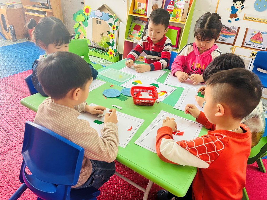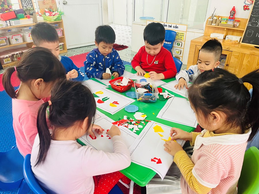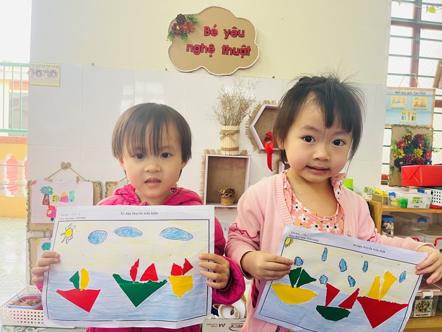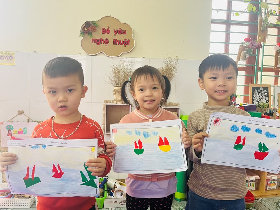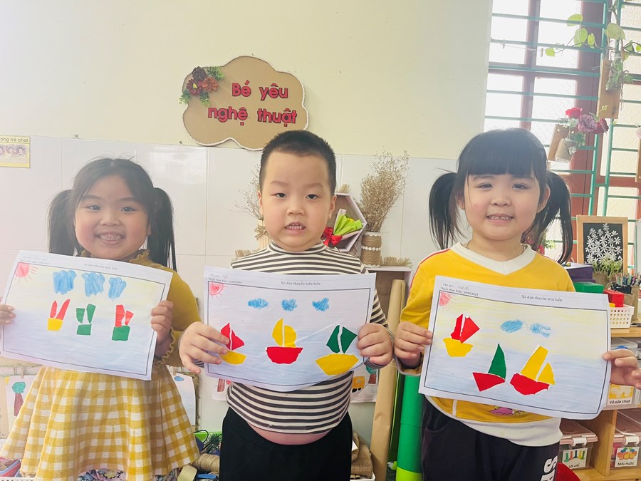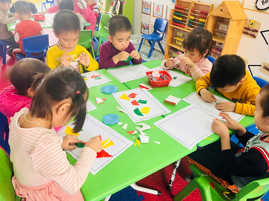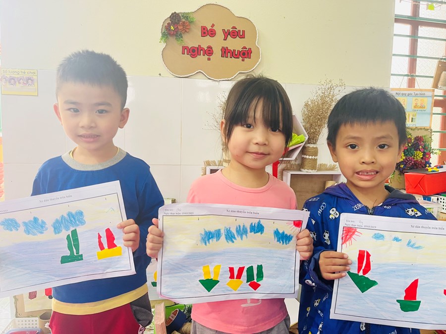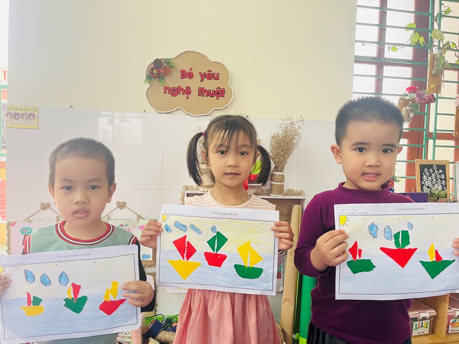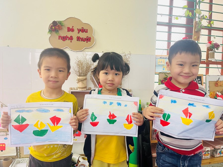 Hoạt động tạo hình: Xé, dán thuyền trên biển