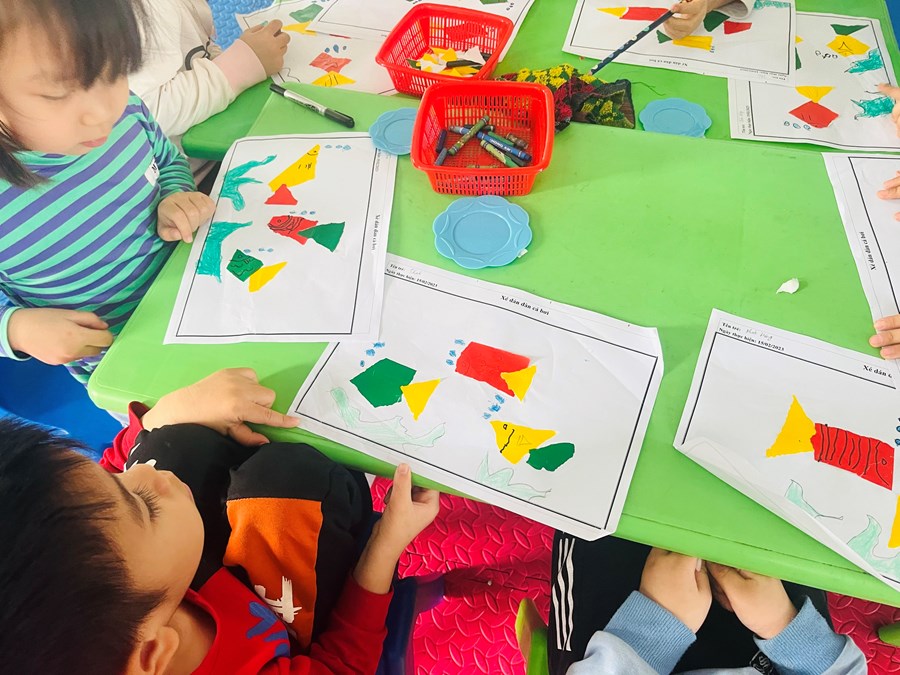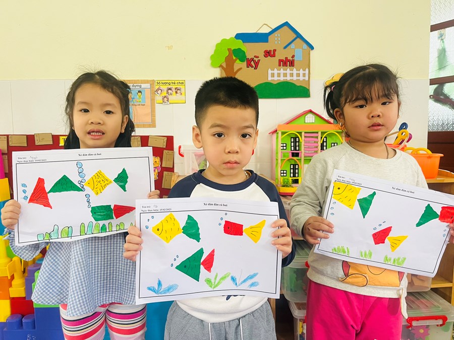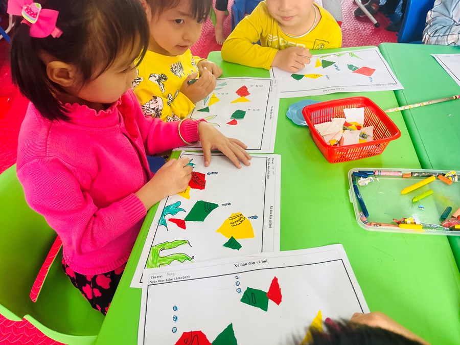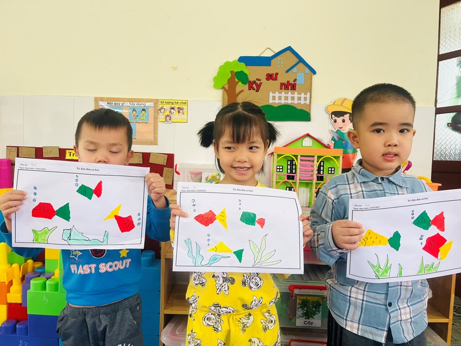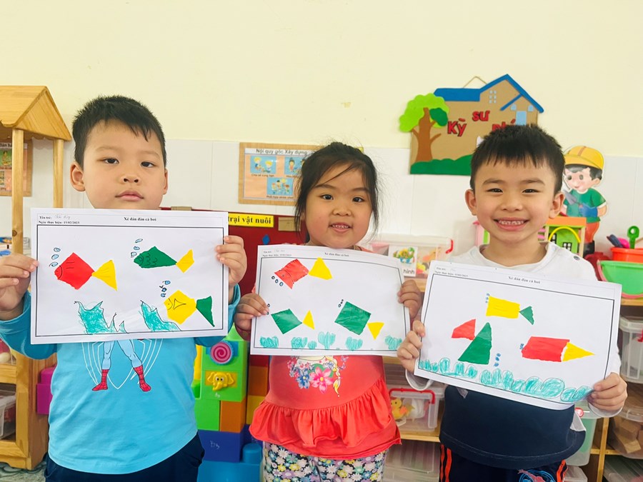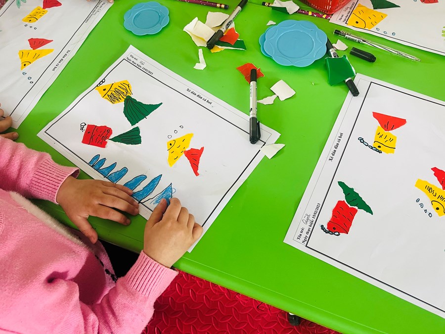Xé dán đàn cá bơi