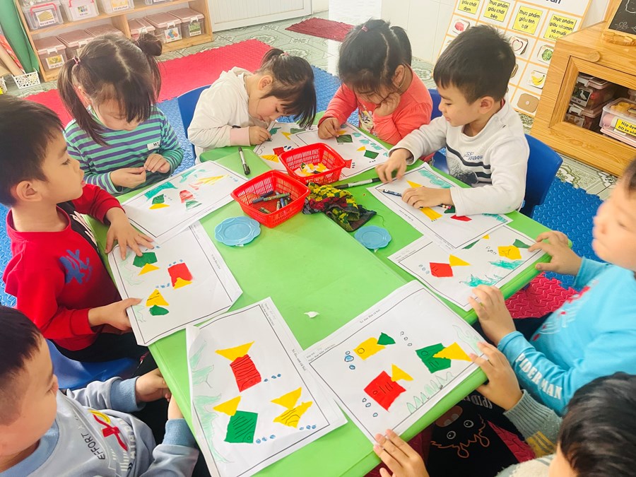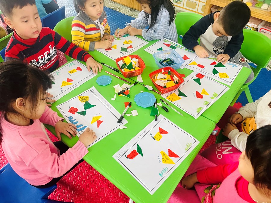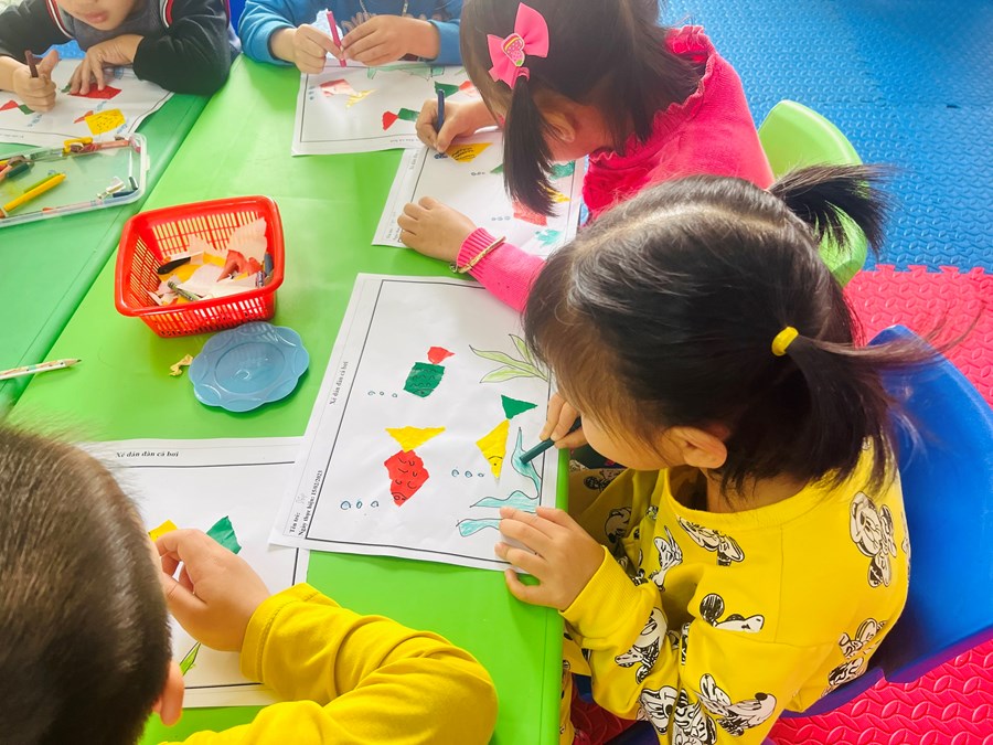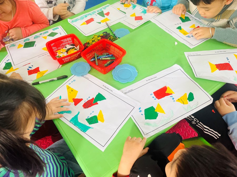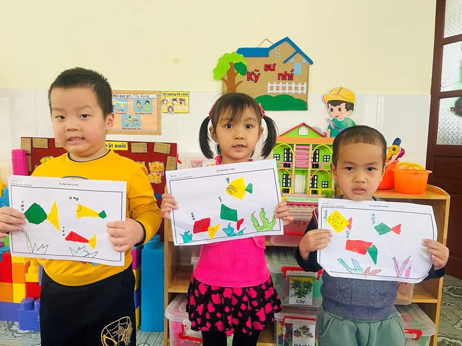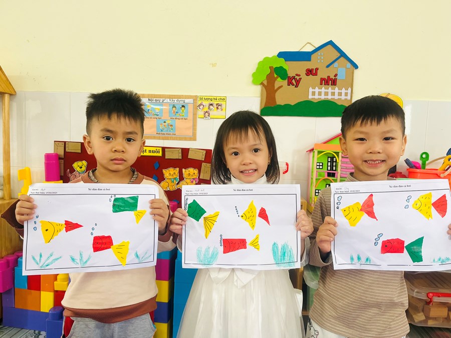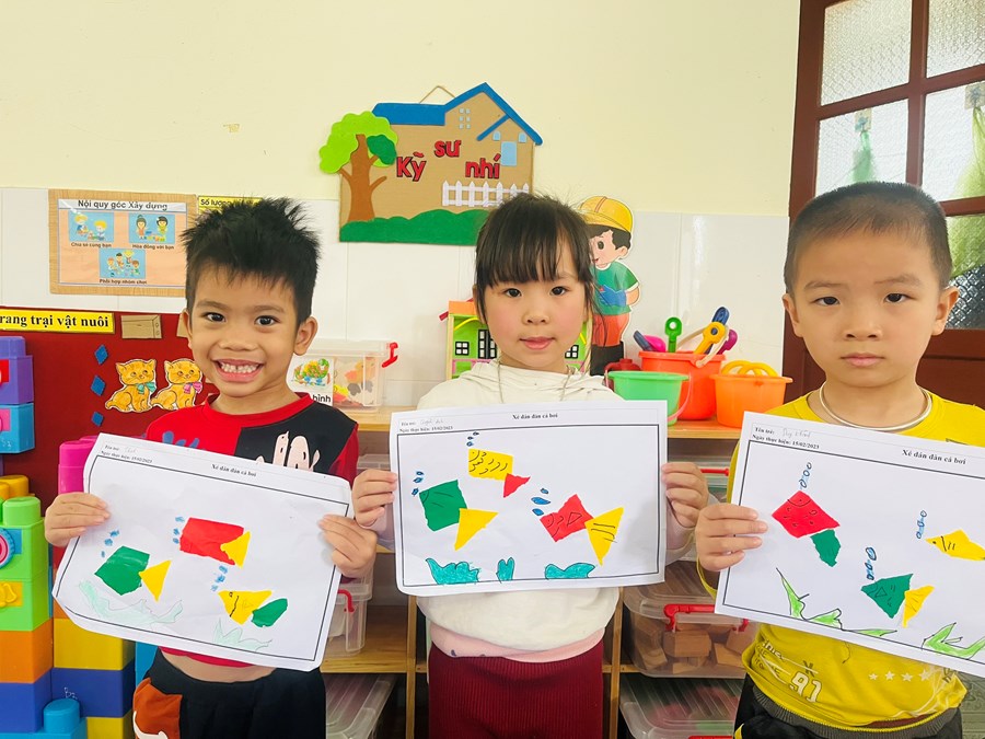 Xé dán đàn cá bơi