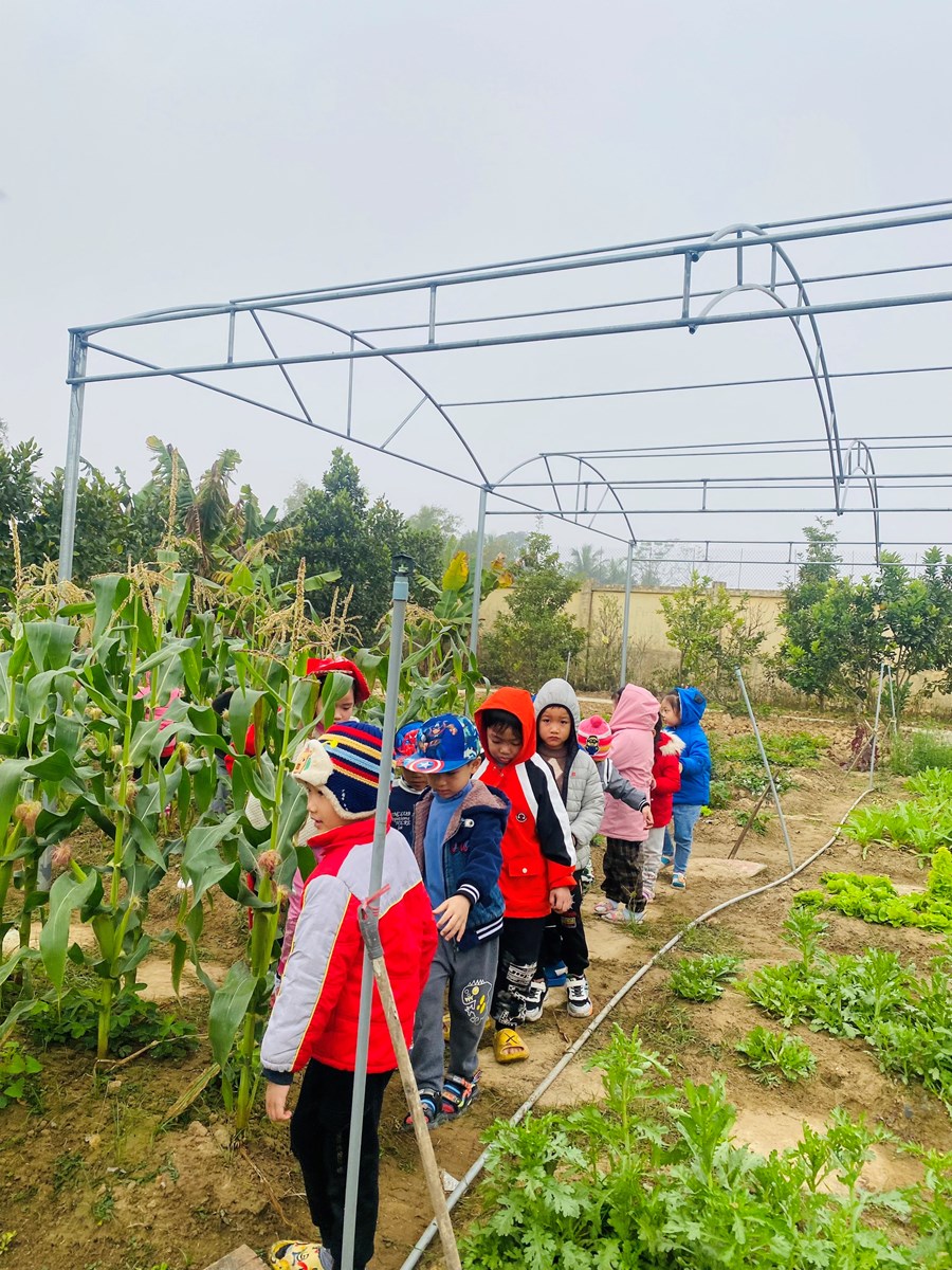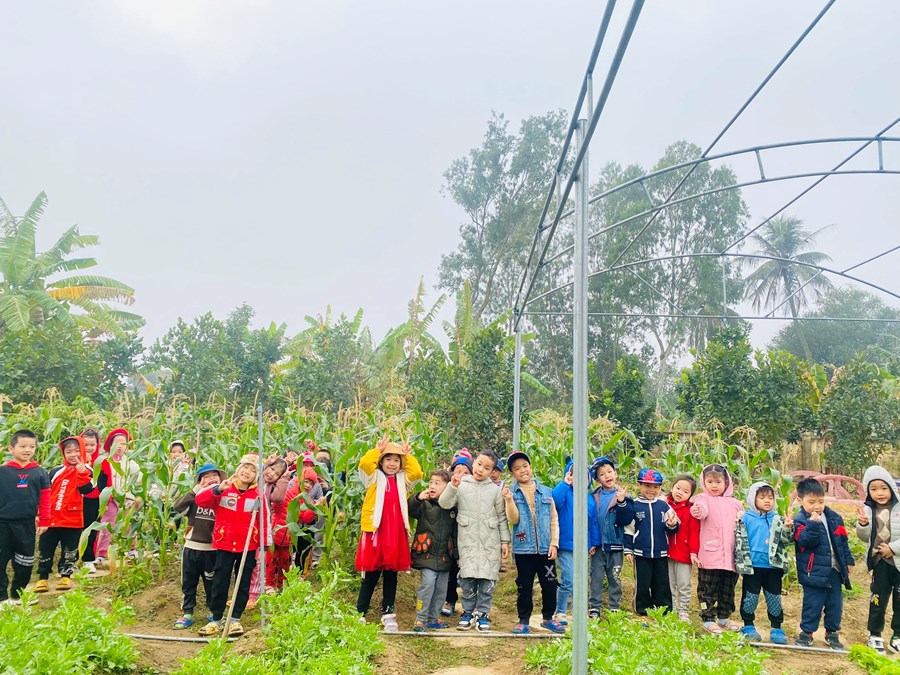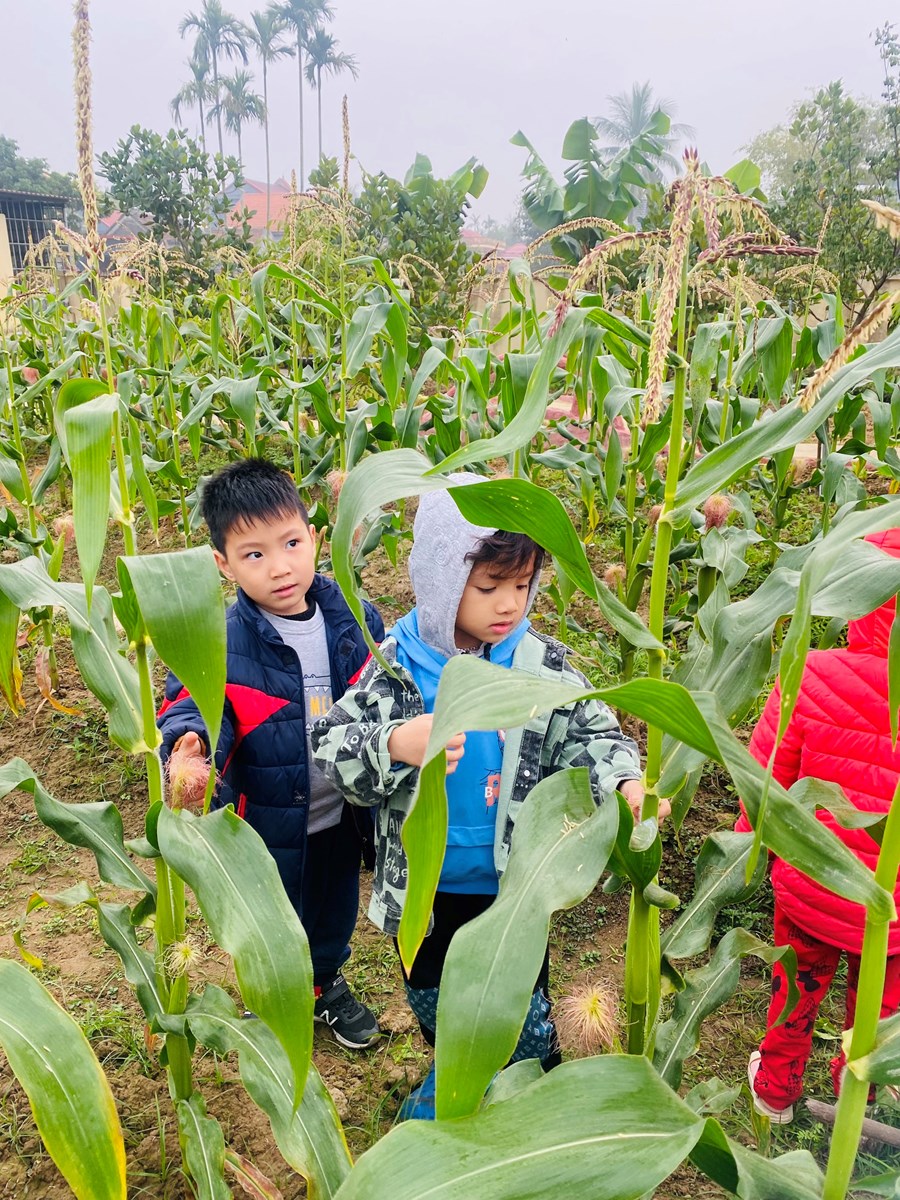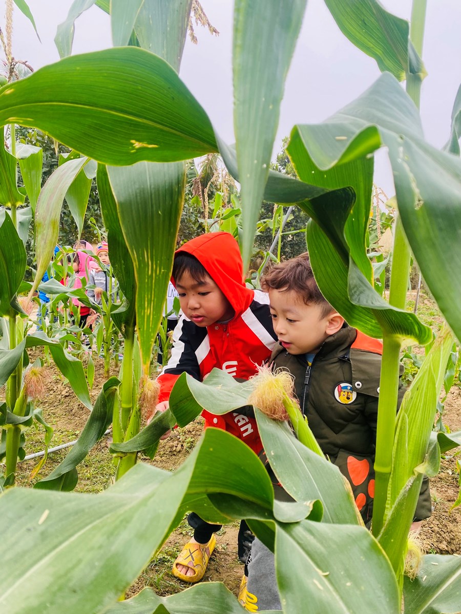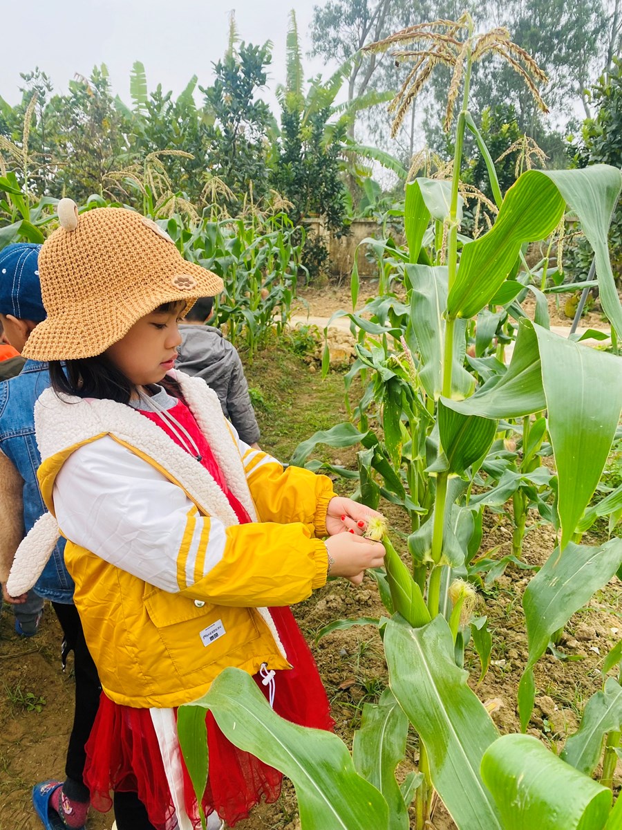 Hoạt động trải nghiệm làm chong chóng lá dừa và thăm quan vườn ngô