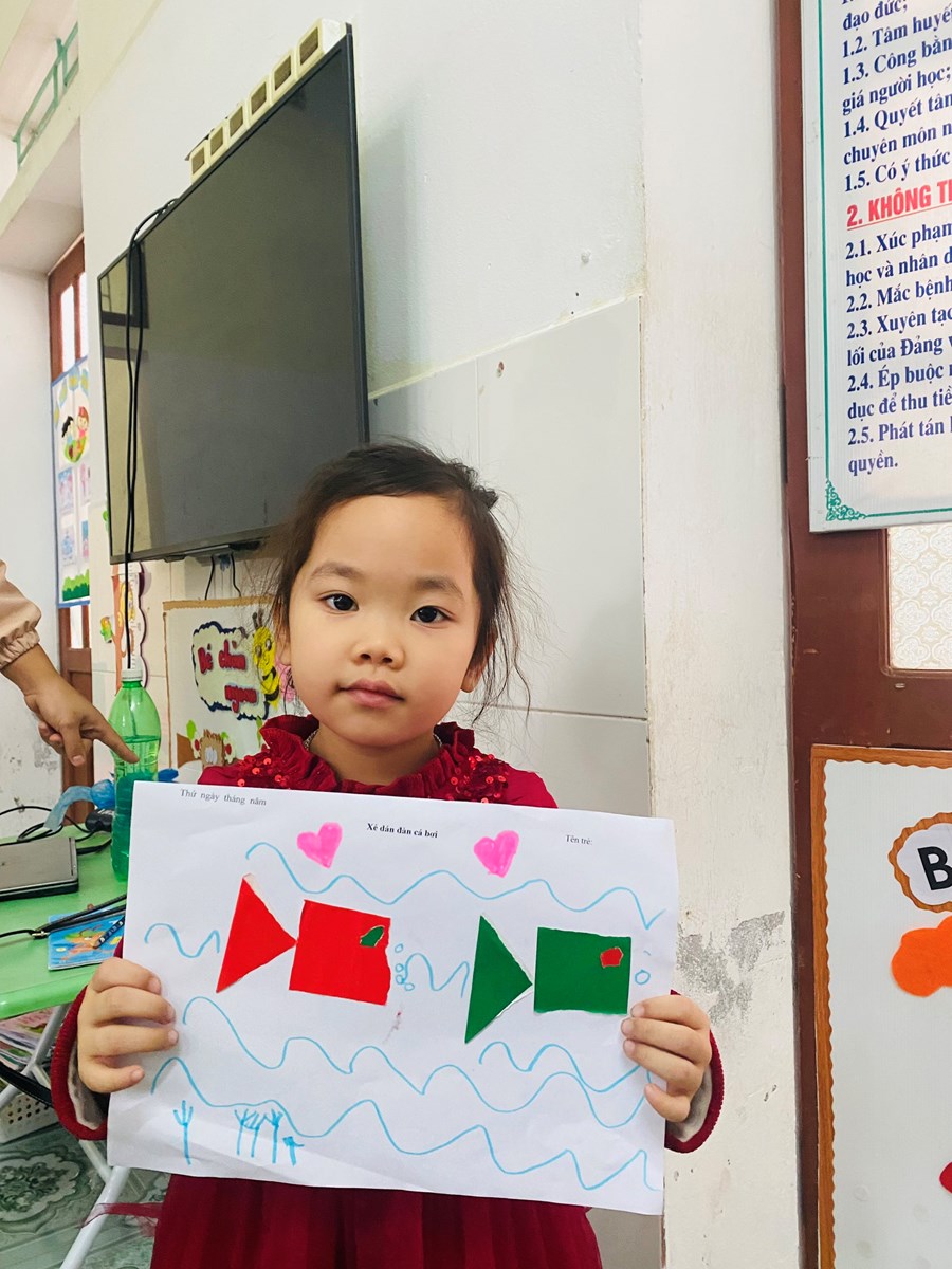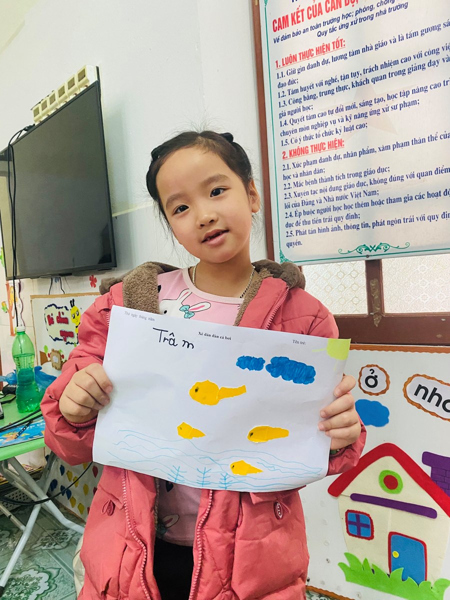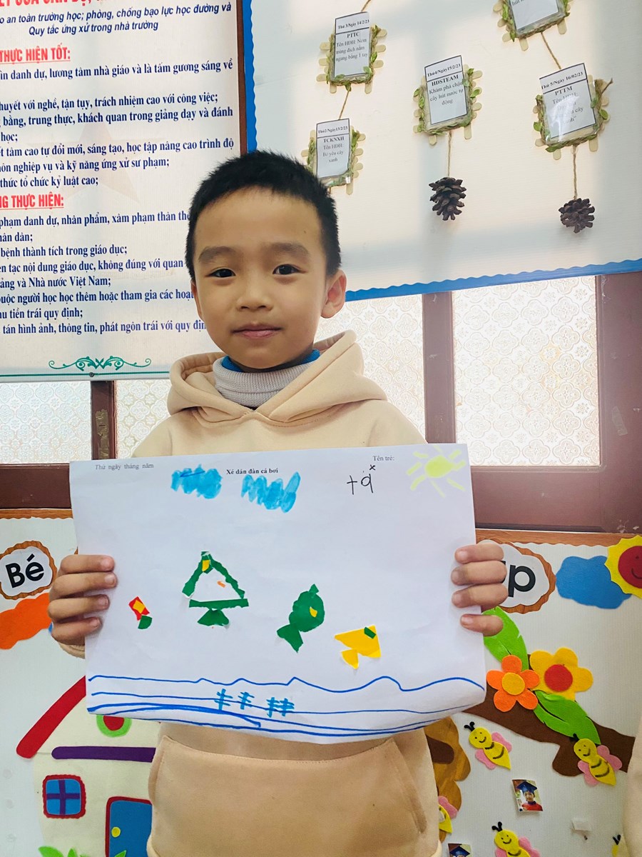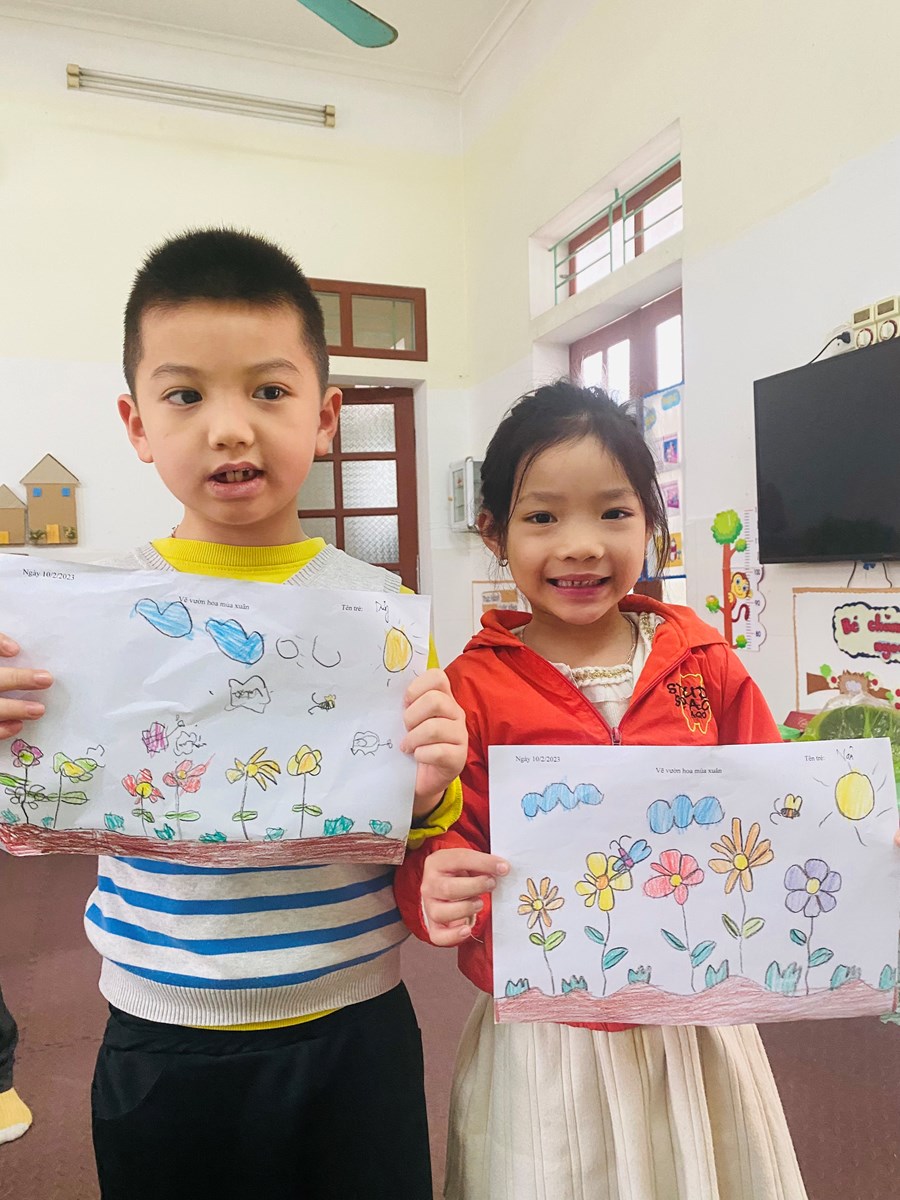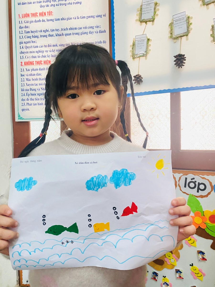 Hoạt động học: Vẽ vườn hoa mùa xuân, xé dán đàn cá