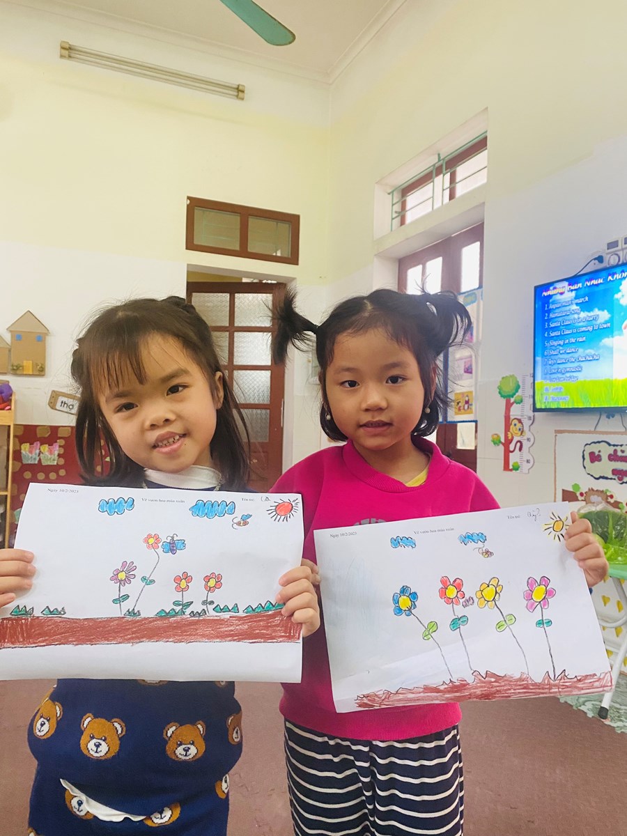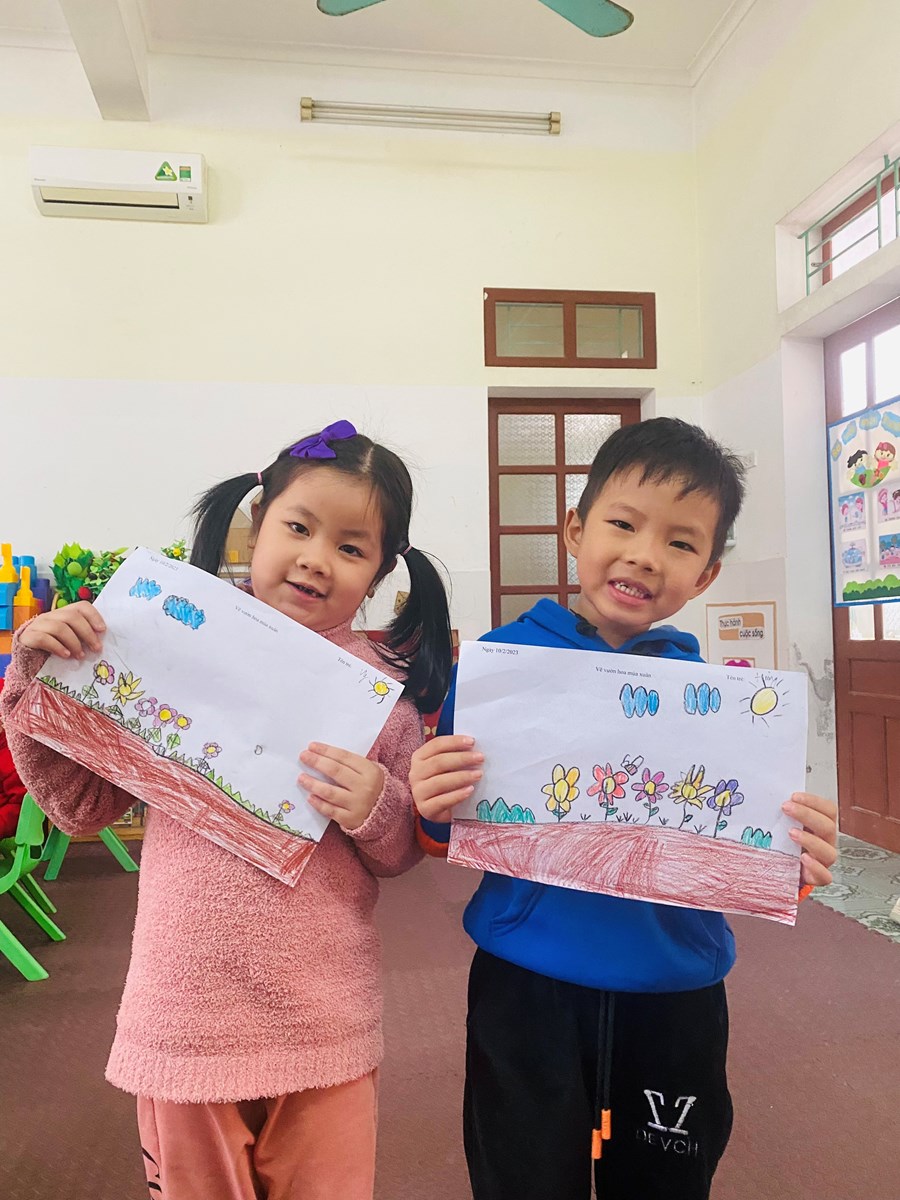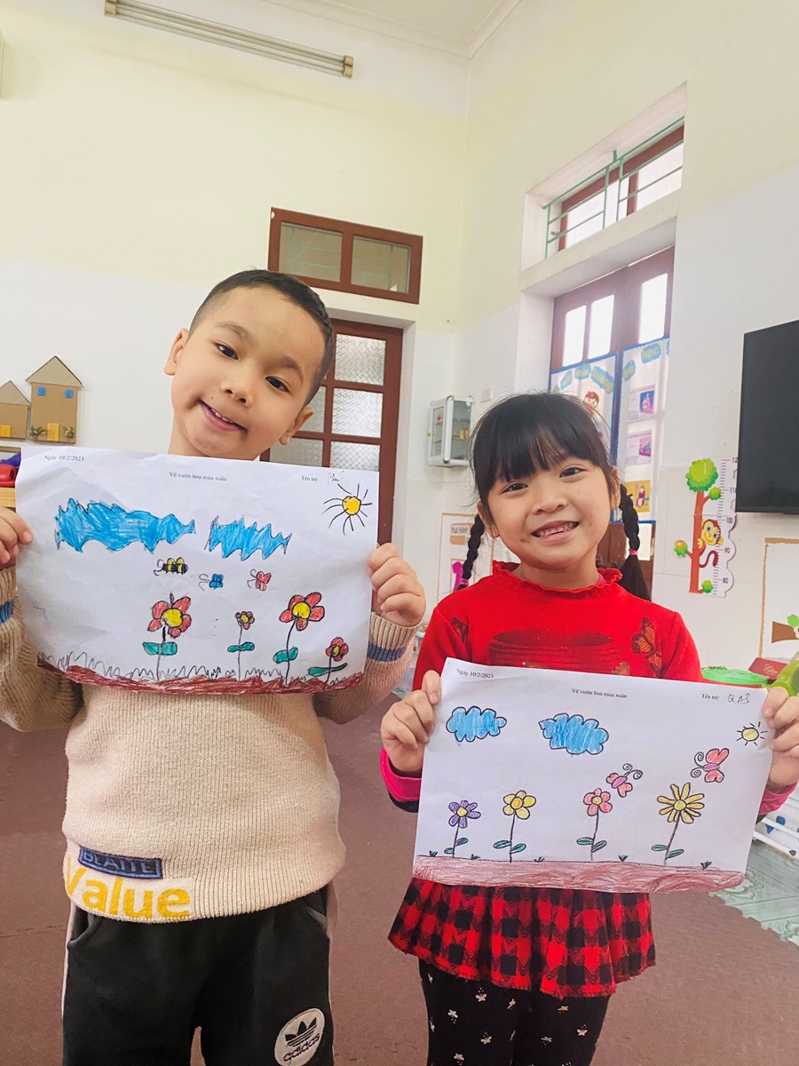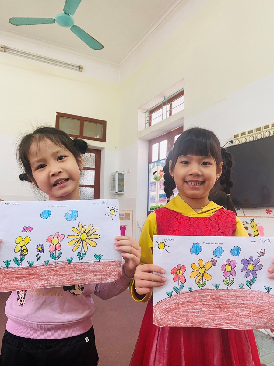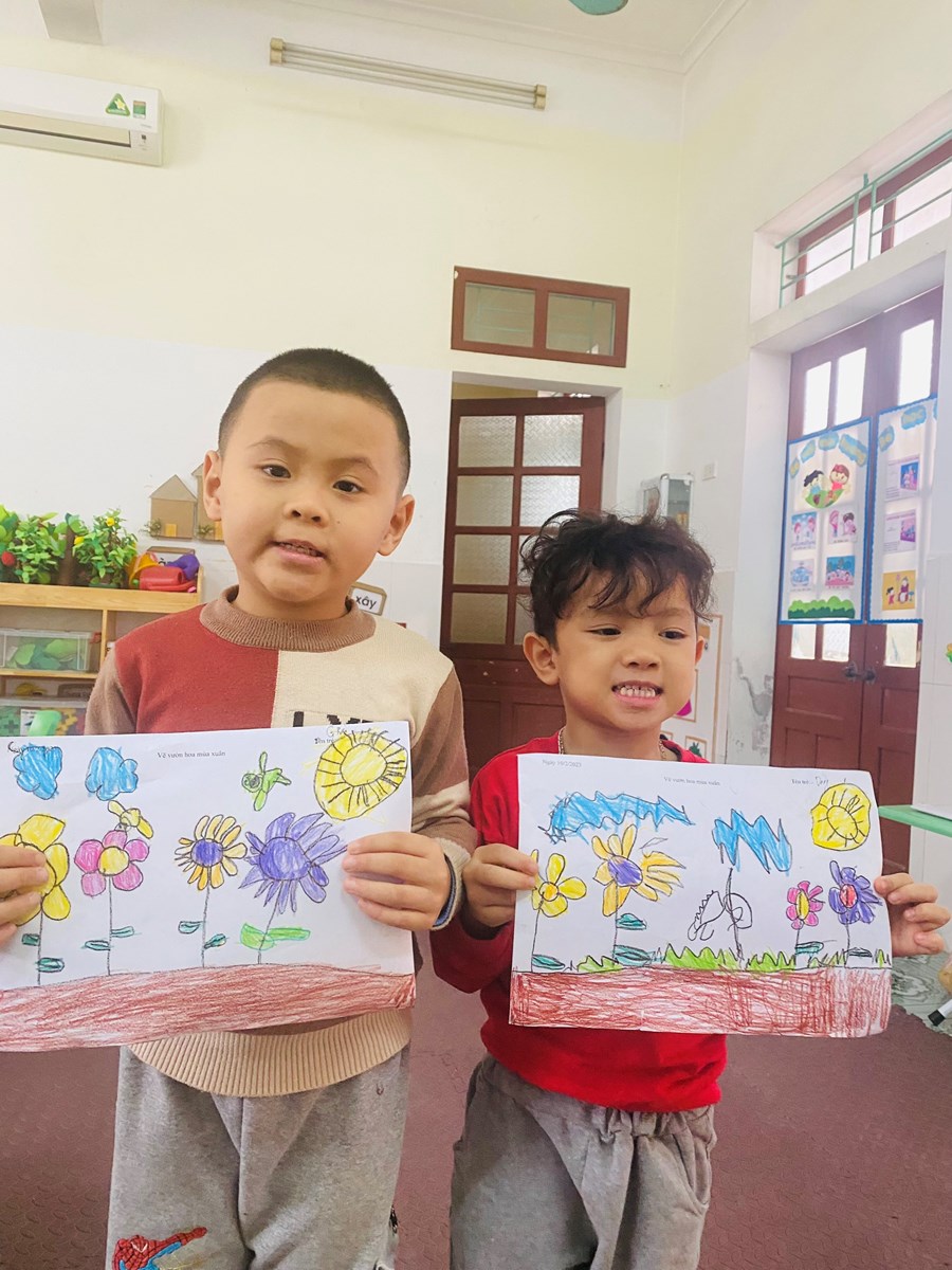 Hoạt động học: Vẽ vườn hoa mùa xuân, xé dán đàn cá