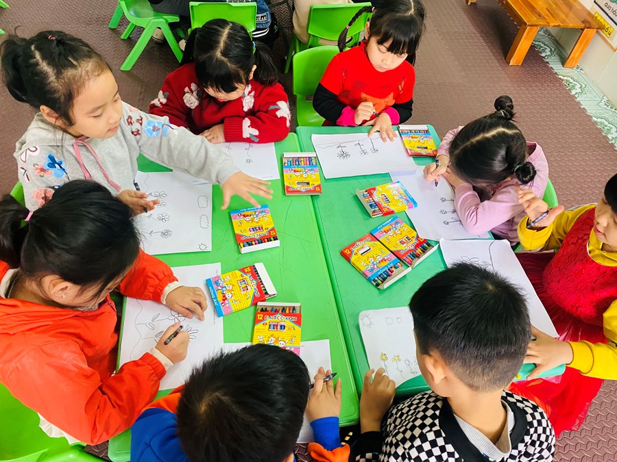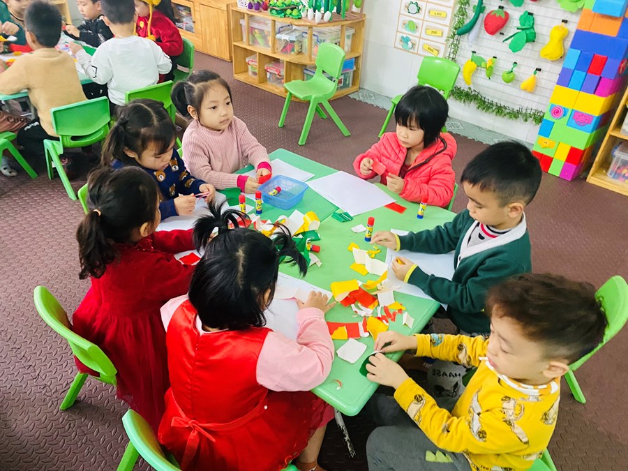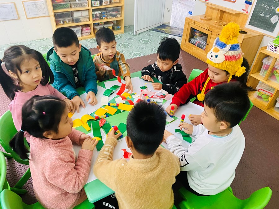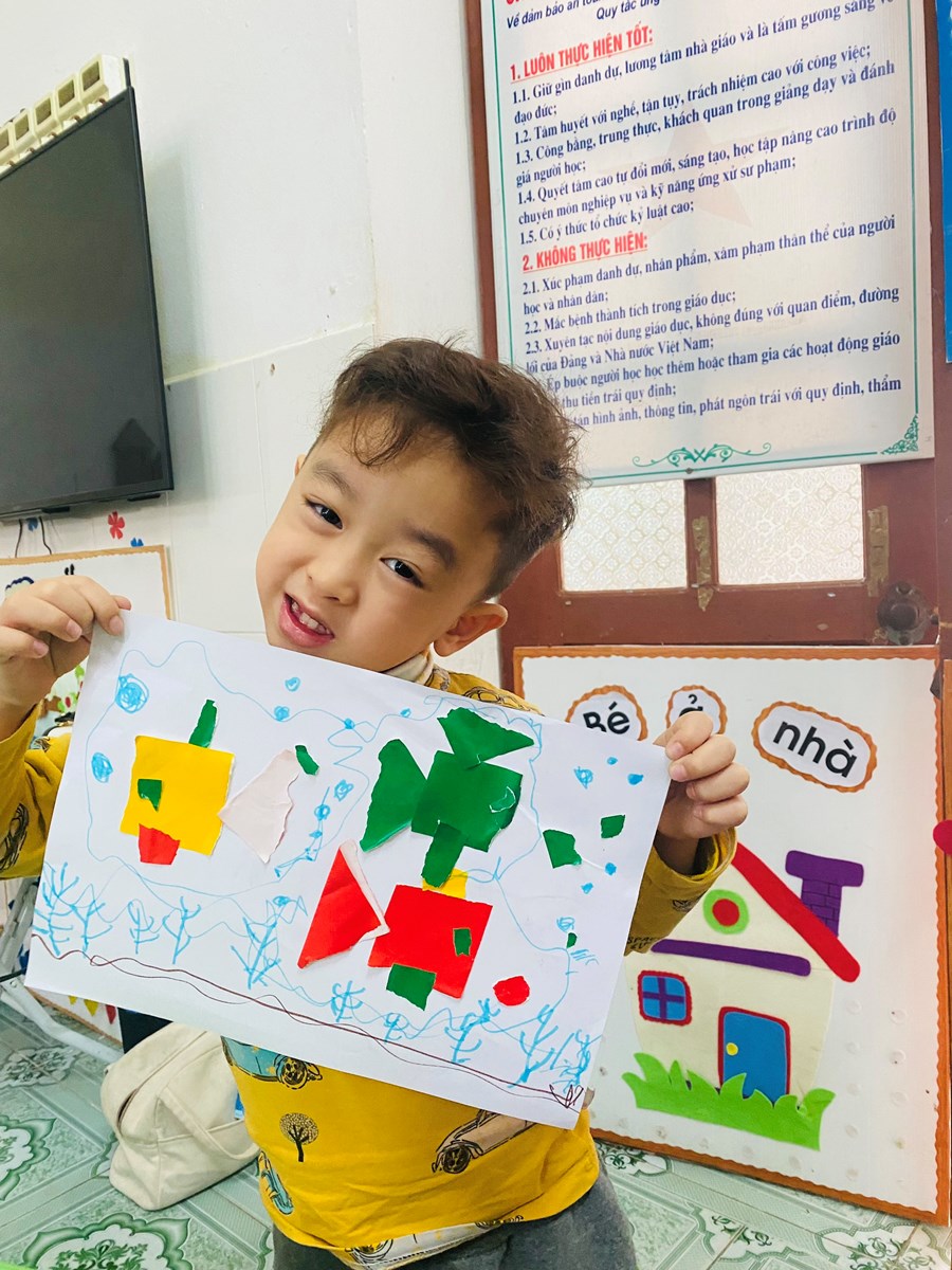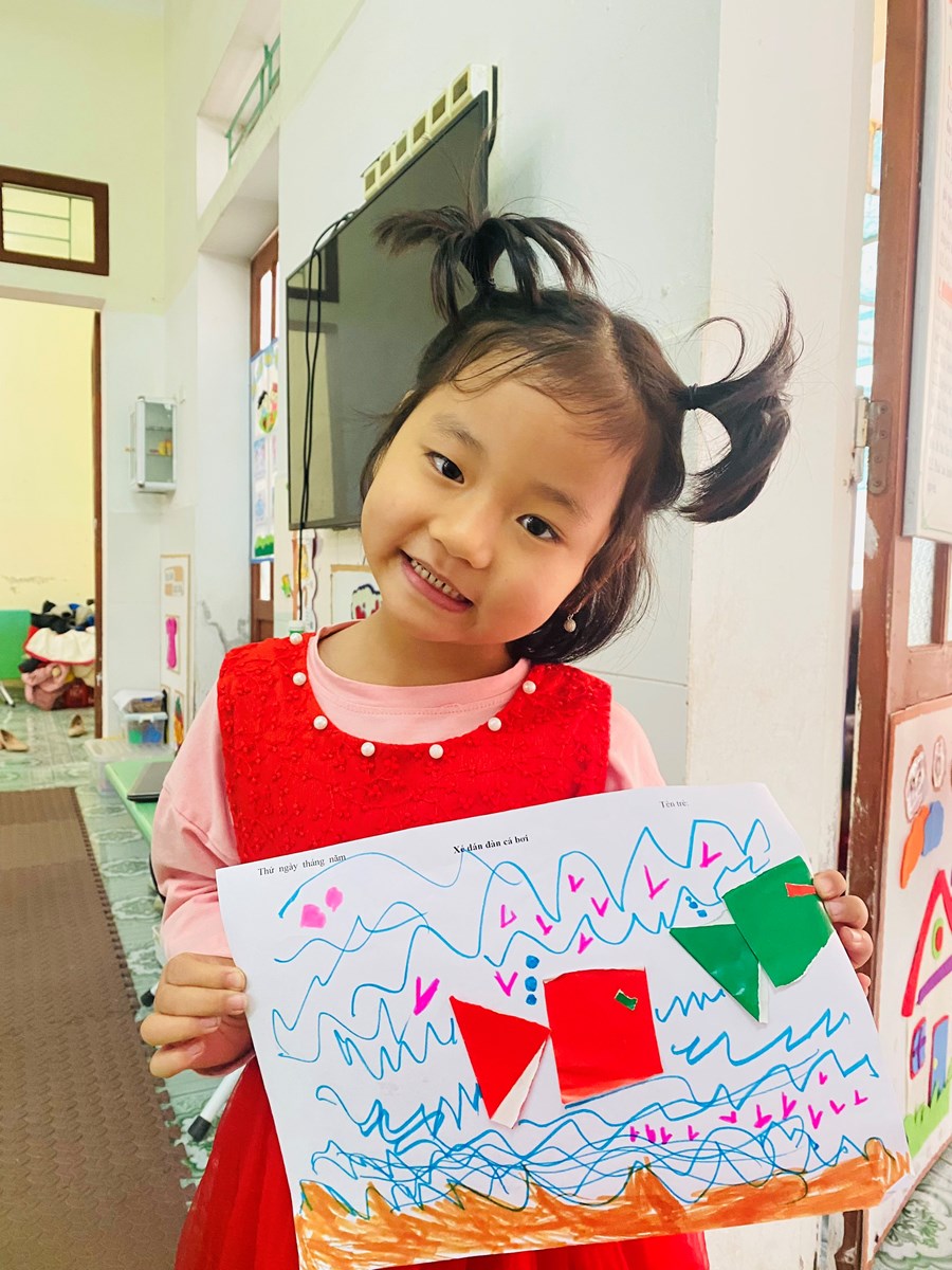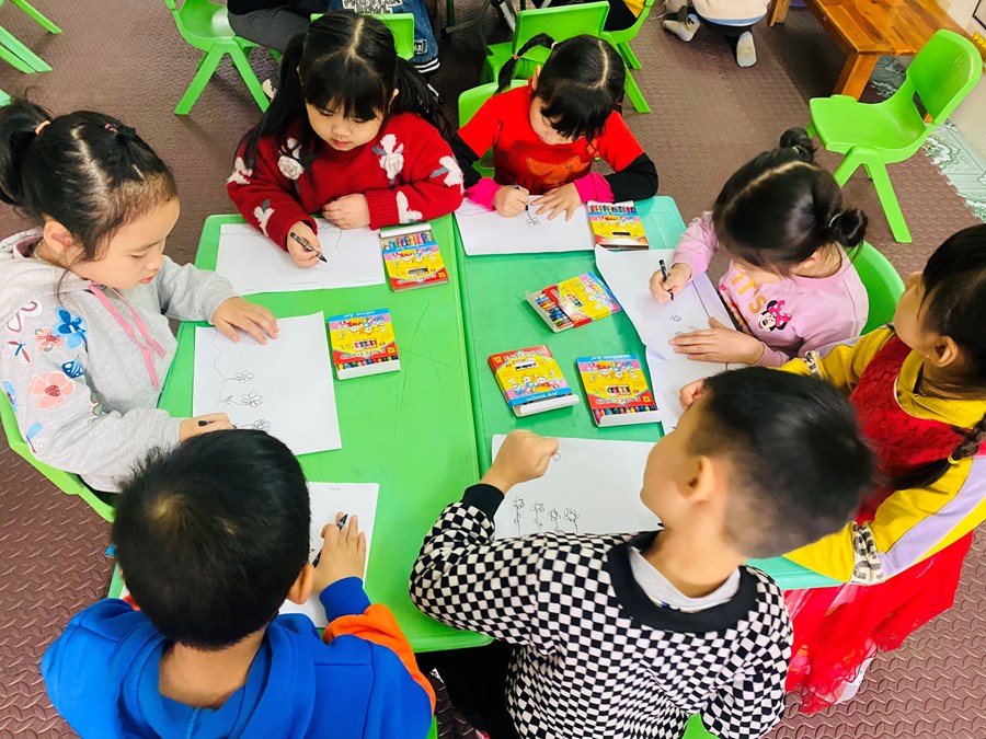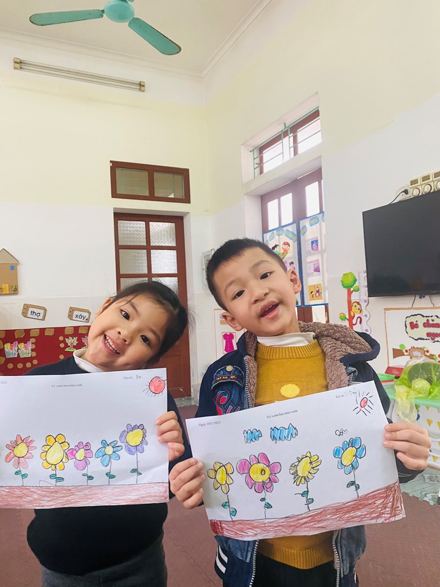 Hoạt động học: Vẽ vườn hoa mùa xuân, xé dán đàn cá
