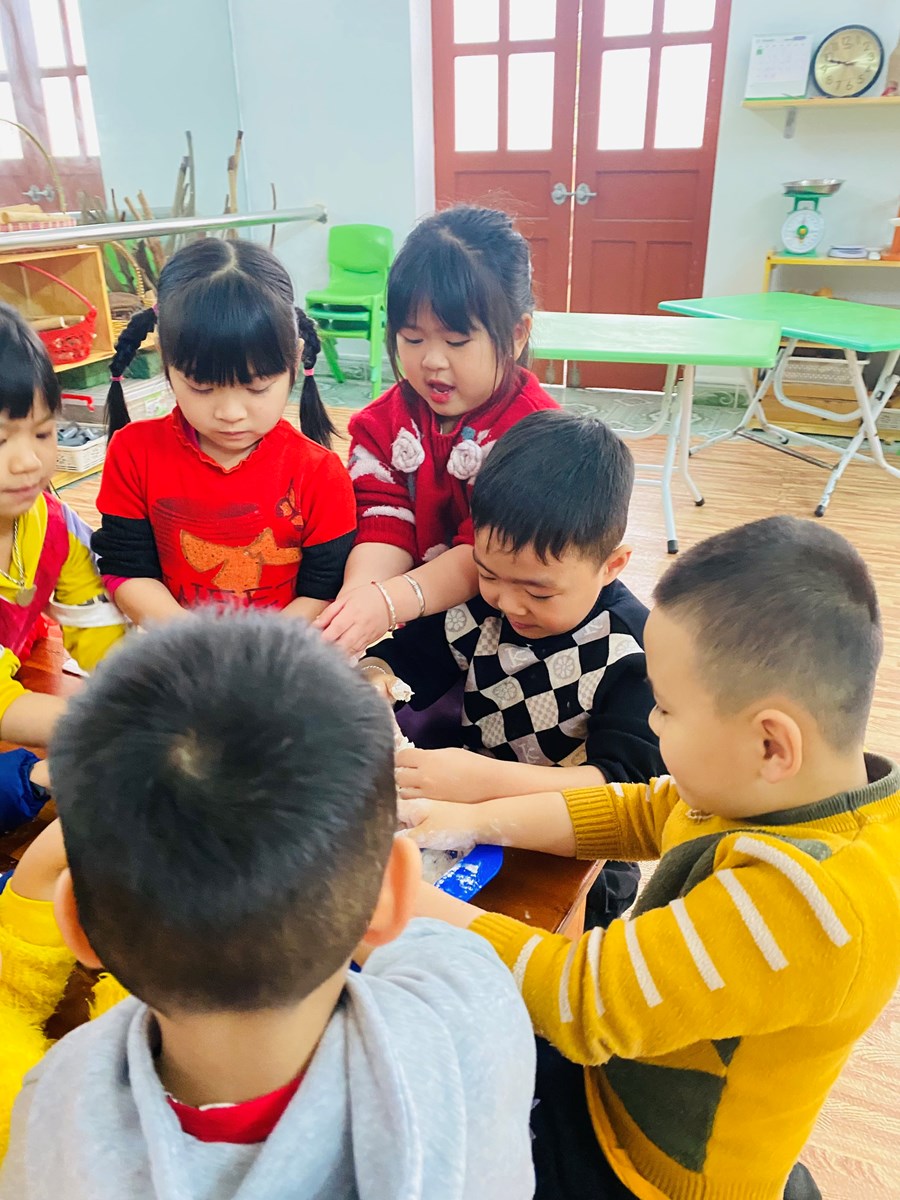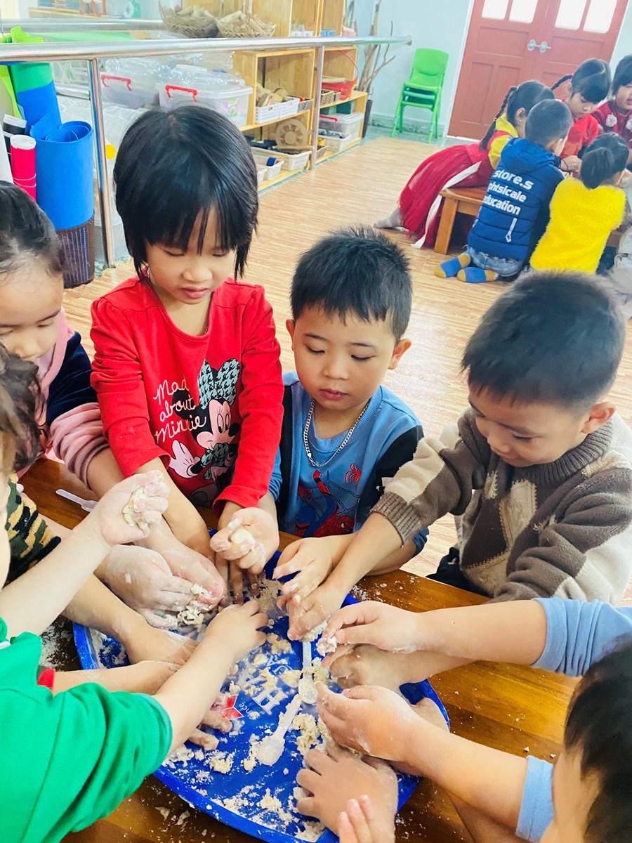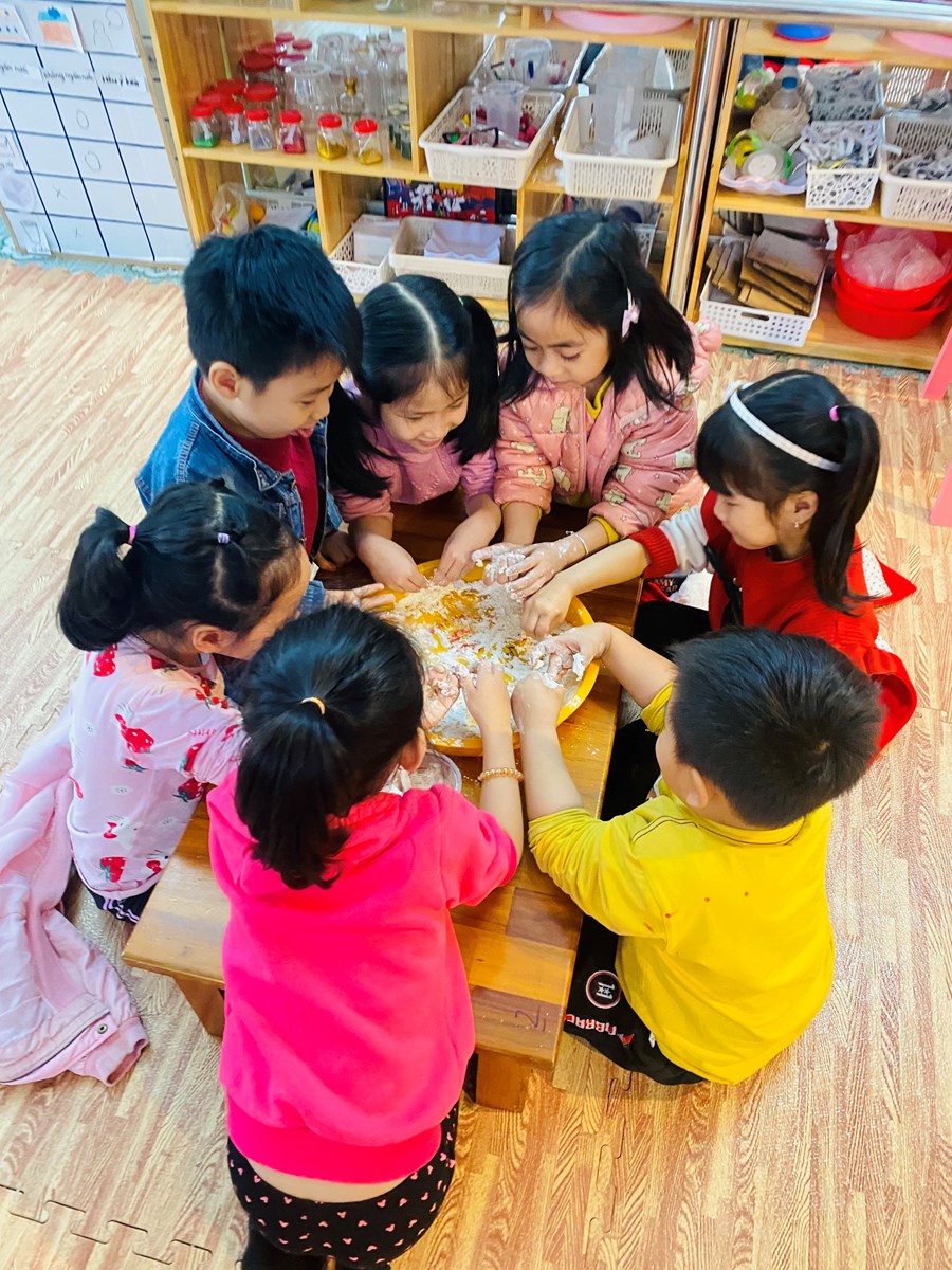 Hoạt động làm đất nặn từ bột mì của các bé lớp 5TA2