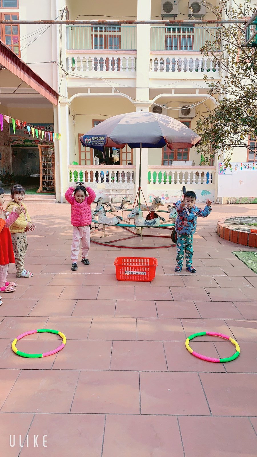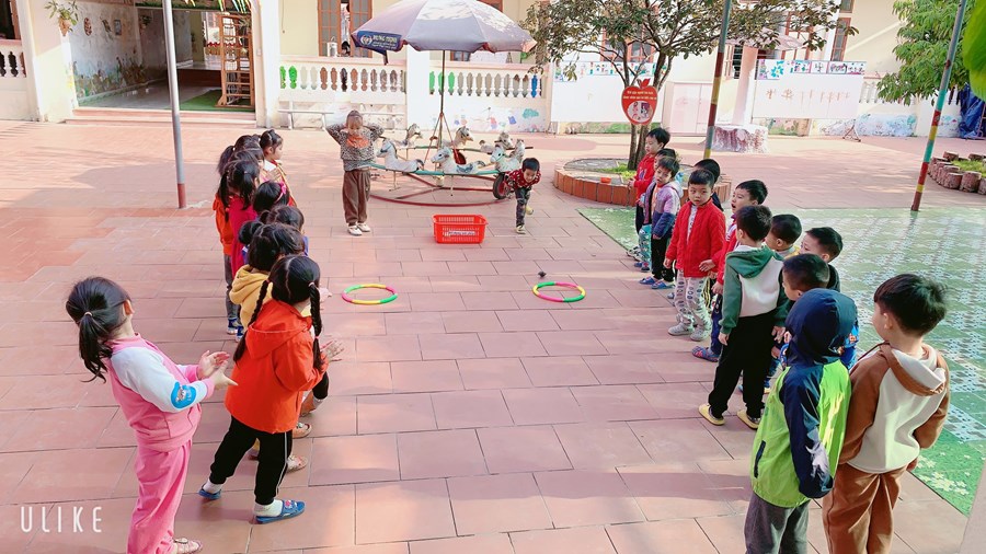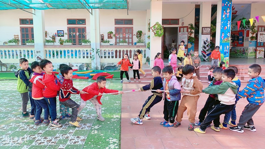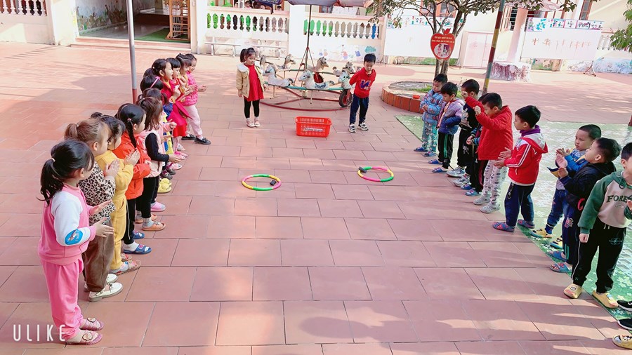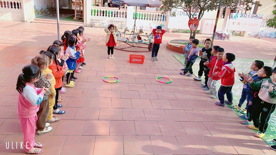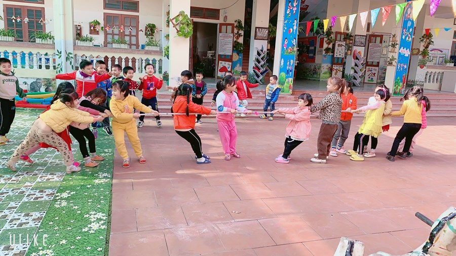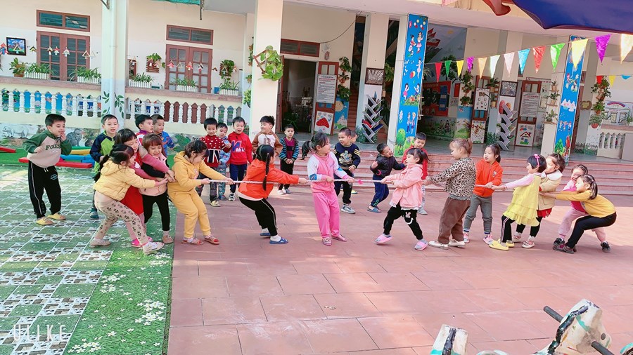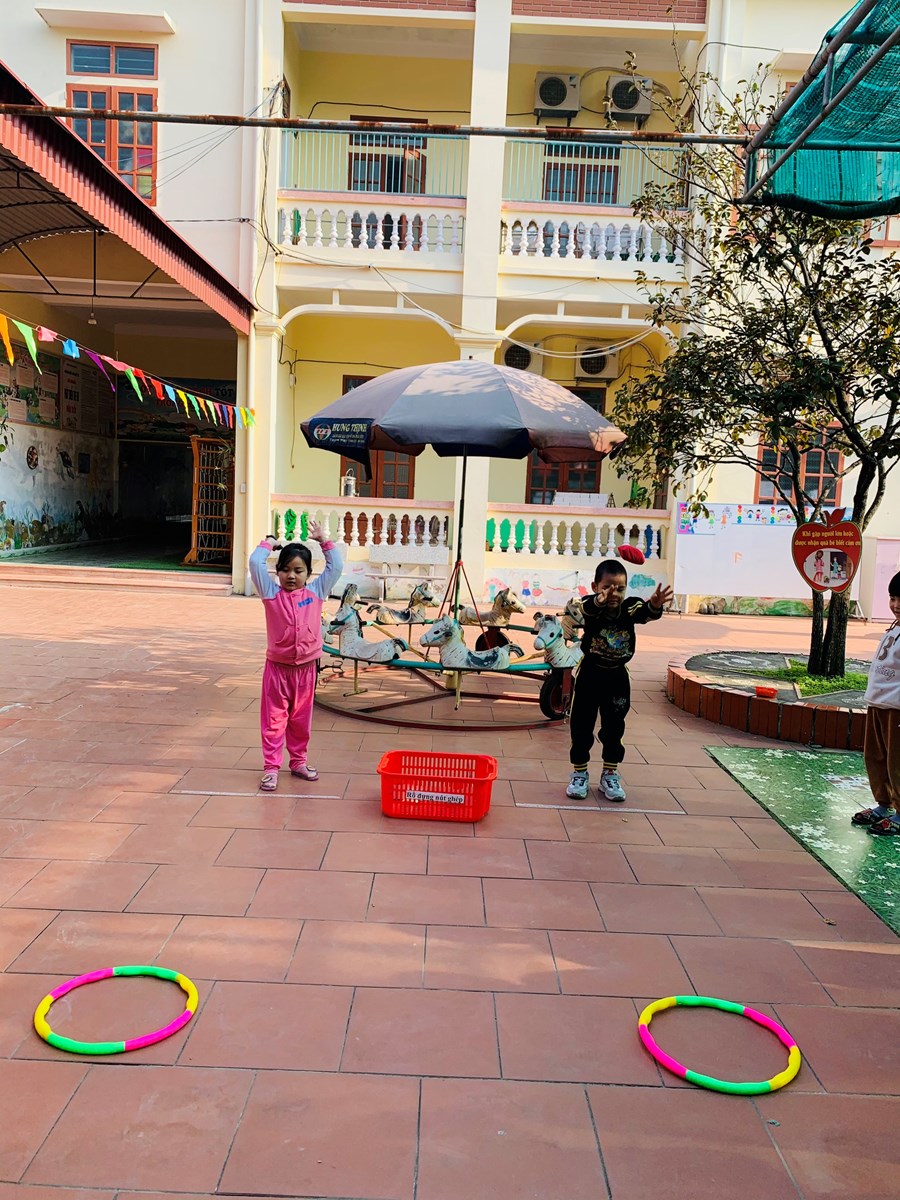 Hoạt động học: Ném trúng đích nằm ngang bằng 2 tay Trò chơi vận động: Kéo co