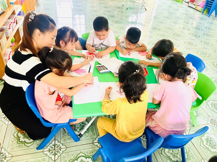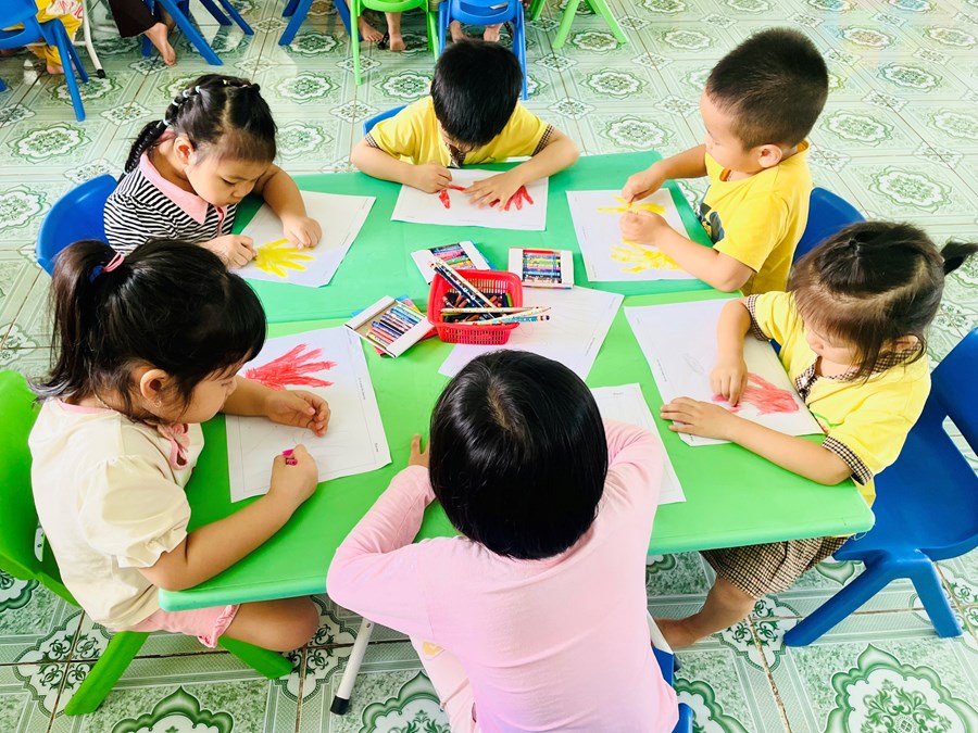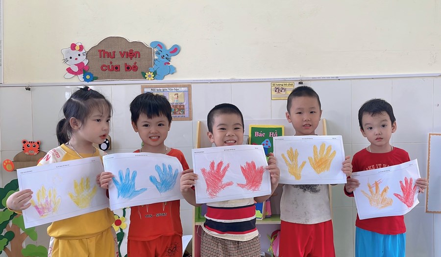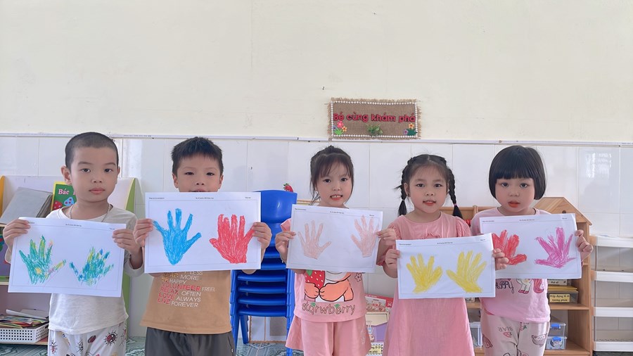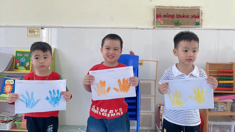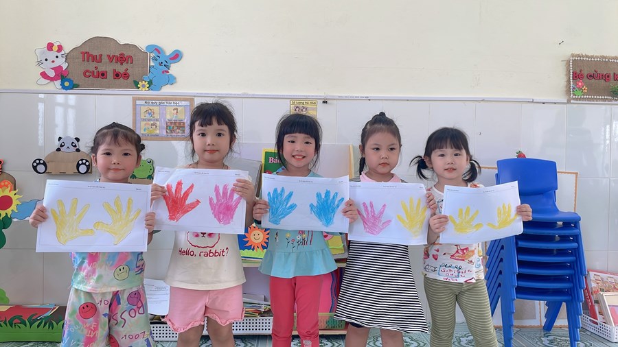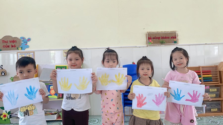 Lớp 4TB2: Thứ 7, ngày 14/10/2023: Hoạt động học: In và tô màu đôi bàn tay