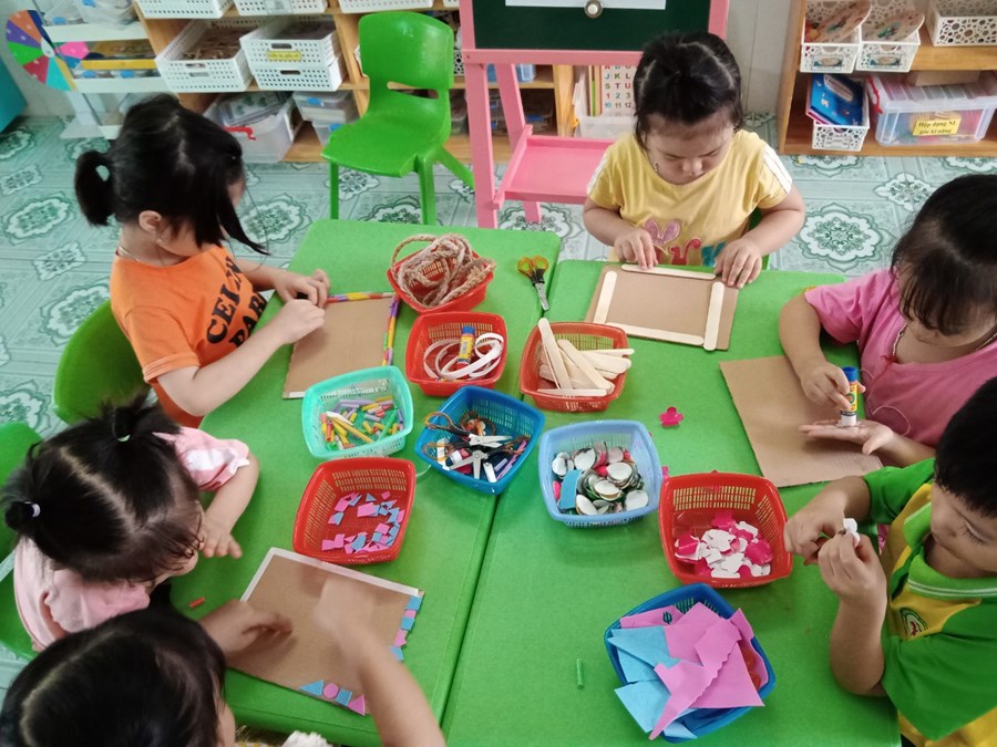 Lớp 5 tuổi A1: Thứ 7, ngày 04/11/2023: Hoạt động STEAM: Làm khung ảnh gia đình